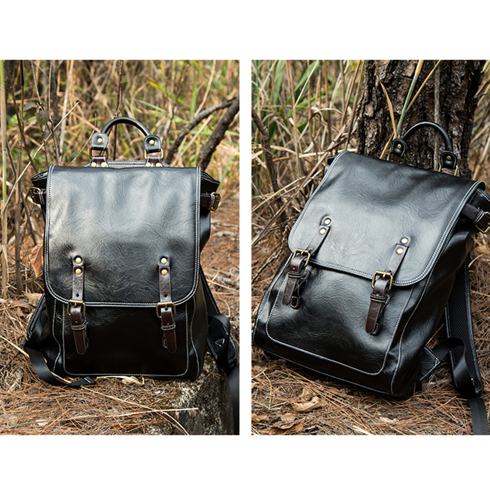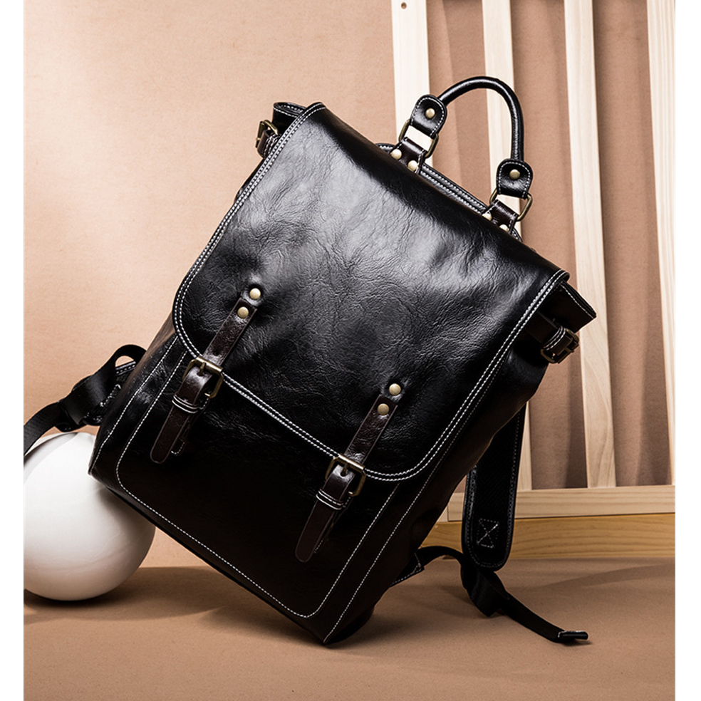 Chiếc Balo laptop nam nữ 15”, ba lô đi làm, đi học đựng máy tính 15inch ngăn trước khoá gài với thiết kế dáng đứng cùng chi tiết ngăn trước khoá gài phối da vân tạo