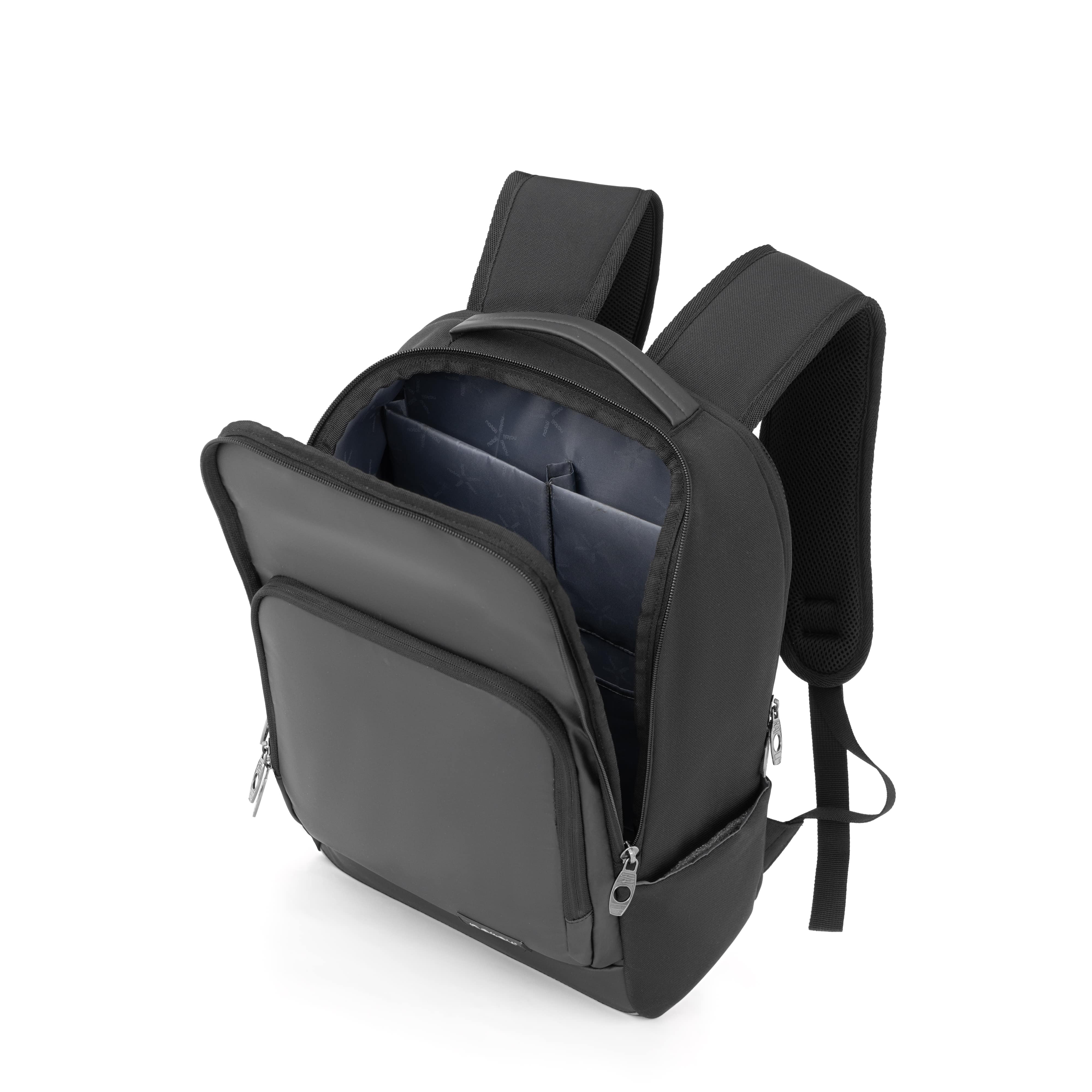 FEATURES - Business backpack with dedicated compartment to protect 15.6" laptop - Spacious U-shaped main compartment opening design increases luggage accessibility - Organized storage in the front compartment keeps essentials neatly organized - Expandable side