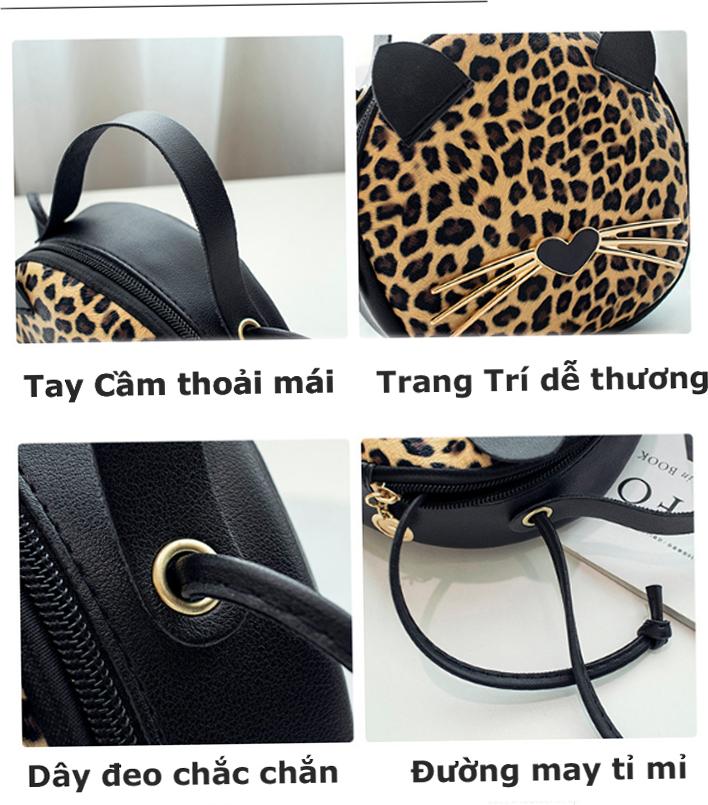 Túi ví đeo vai nữ mini phong cách Hàn Quốc được thiết kế theo phong cách mới nhất 2019 với kiểu dáng hình tròn mặt mèo dễ thương, kích thước nhỏ nhắn: 18x16cm. Túi có thể đựng một chiếc điện thoại, ví tiền, sạc dự phòng, sổ ghi chú cùng một ít mỹ phẩm, vừa đủ cho nhu cầu mang ra ngoài của 1 bạn nữ.