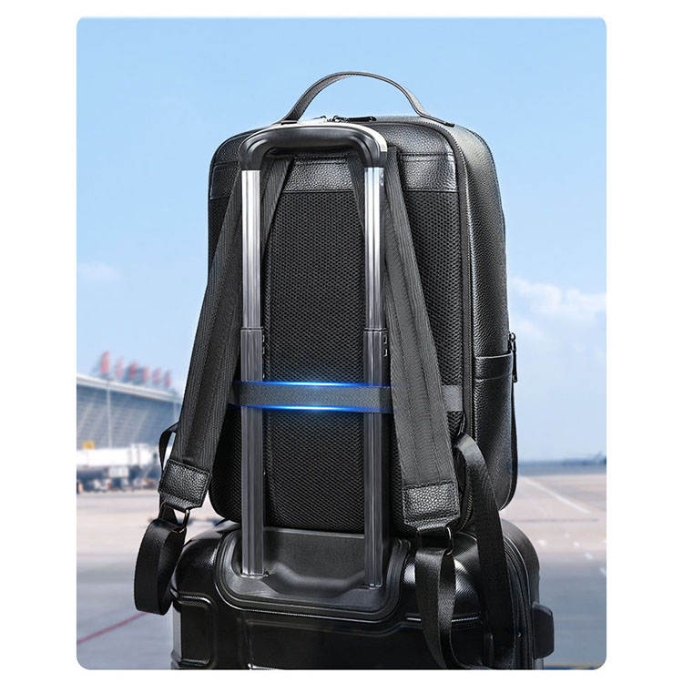 Mặt sau balo là đệm thông hơi mềm êm, thoáng khí và có khe cài qua thanh valii. Với độ dày vừa phải, sức chứa lớn với kiểu dáng cứng cáp, đứng dáng, đơn giản và không kém phần nổi bật cùng chất liệu da bò cao cấp, sẽ giúp bạn năng động, tự tin trong mọi tình huống.