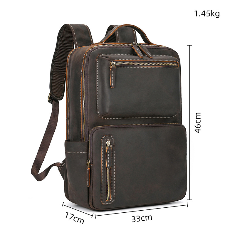 Kích thước : rộng 33cm X cao 46cm X dày 15cm Trọng lượng: 1.45 kg Màu sắc: Nâu, Nau sẫm, Đen Phương pháp sản xuất: thủ công Chất liệu : Da BÒ THẬT Chức năng: thoáng khí, chống mài mòn, dễ làm sáng, chống sốc thiết kế : phong cách trẻ trung ,sang trọng, đẳng cấp