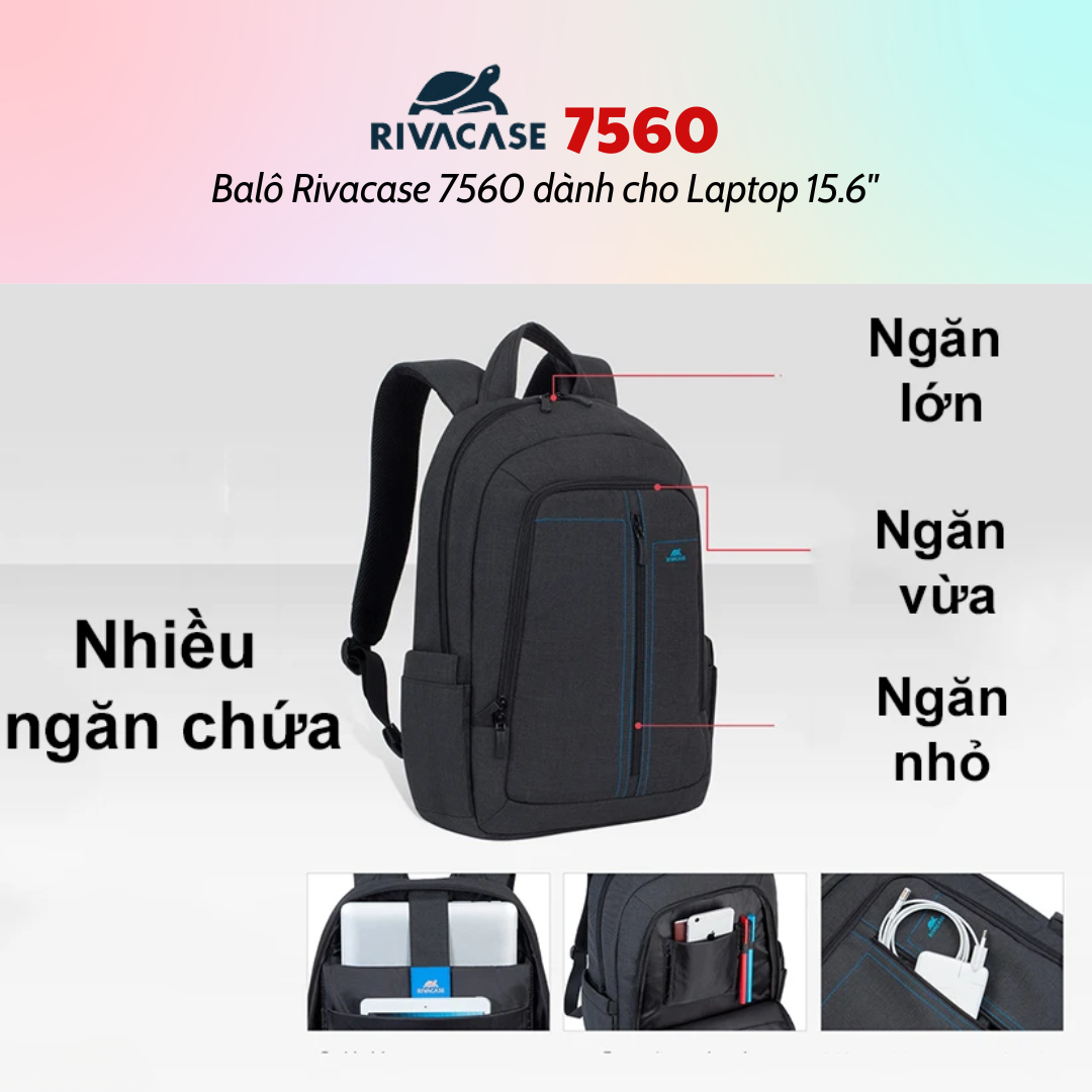 Ba lô Rivacase 7560 được thiết kế màu sắc trẻ trung, năng động, phù hợp sử dụng cho nhiều mục đích khác nhau như đi học, đi làm hằng ngày, đi công tác hoặc thậm chí là đi du lịch. Rivacase 7560 với một loạt các tính năng mang đến cho người dùng sự tiện lợi và linh hoạt như dây đeo vai mềm, êm sẽ giúp người dùng cảm thấy thoải mái trong suốt quá trình đeo, hệ thống rút gọn dây đeo giúp tránh trường hợp dây lủng lẳng, không gọn gàng trong khi di chuyển cũng như khi đặt ba lô ở bất cứ đâu.