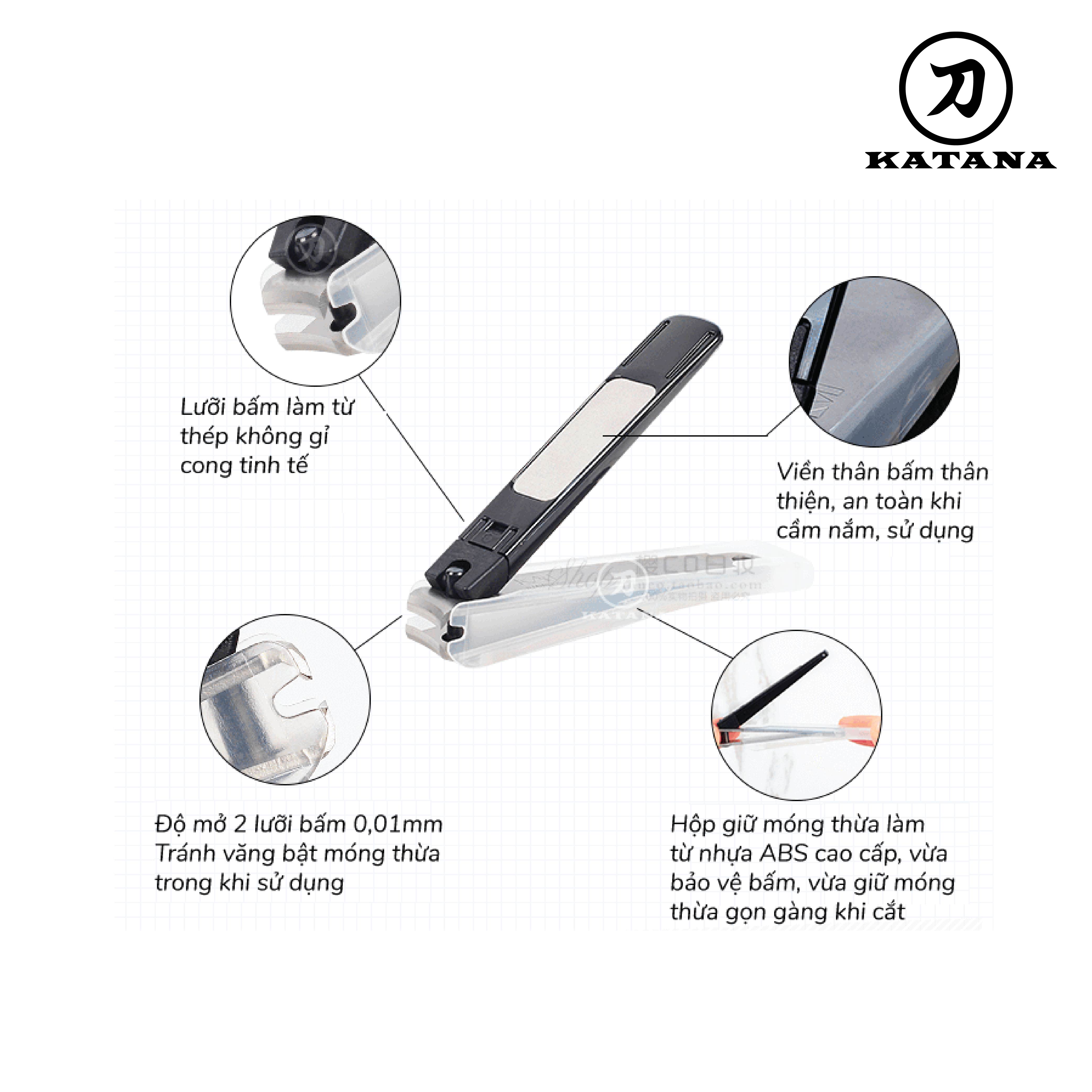 - Có khay đựng móng thông minh giúp móng sau khi được cắt không bị bắn tung tóe ra ngoài, gọn gàng & sạch sẽ