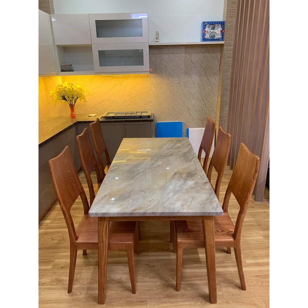 Bộ Bàn ăn 6 ghế bàn tràn mặt đá với quy cách thiết kế tiêu chuẩn, đảm bảo đem lại sự thoải mái, ấm cúng cho phòng bếp nhà bạn.