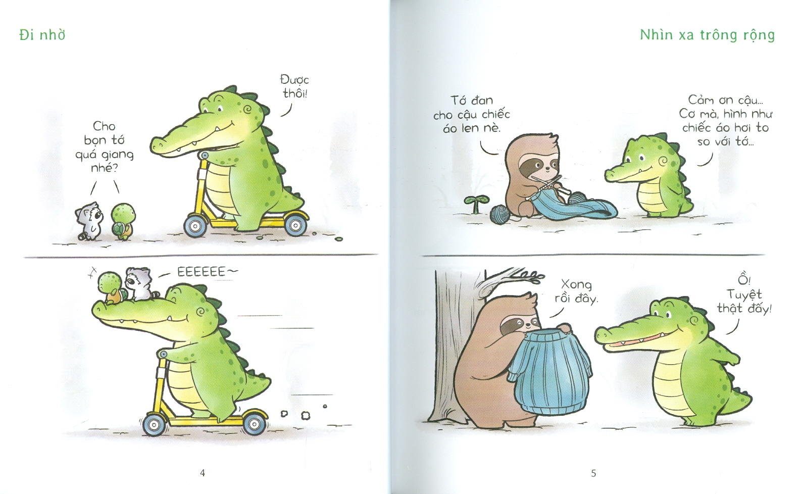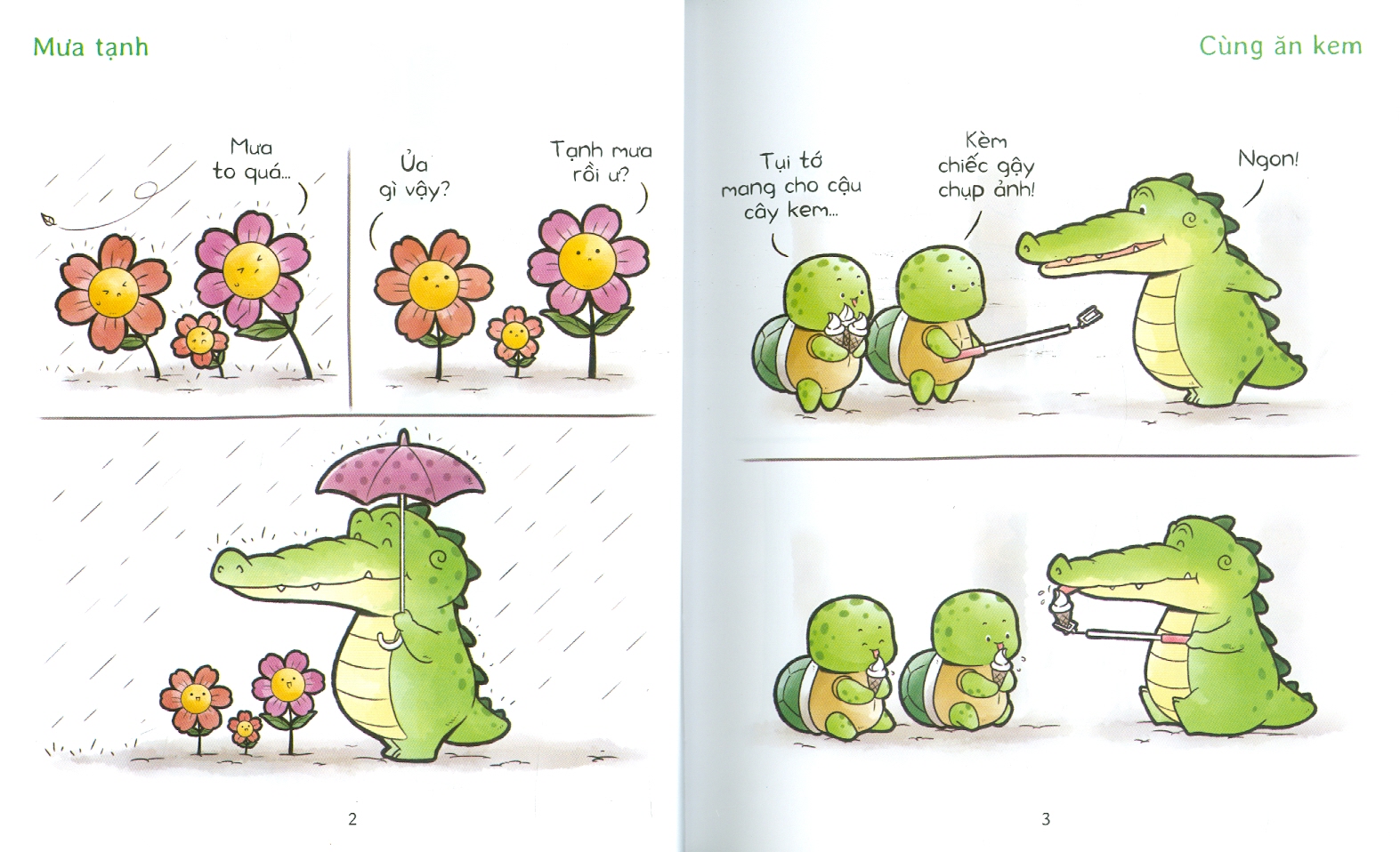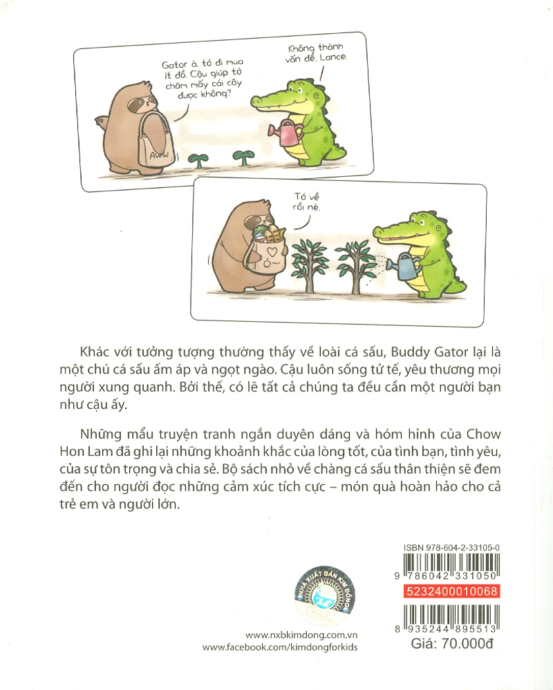 Những mẩu truyện tranh ngắn duyên dáng và hóm hỉnh của Chow Hon Lam đã ghi lại những khoảnh khắc của lòng tốt, của tình bạn, tình yêu, của sự tôn trọng và chia sẻ. Bộ sách nhỏ về chàng cá sấu thân thiện sẽ đem đến cho người đọc những cảm xúc tích cực – món quà hoàn hảo cho cả trẻ em và người lớn.