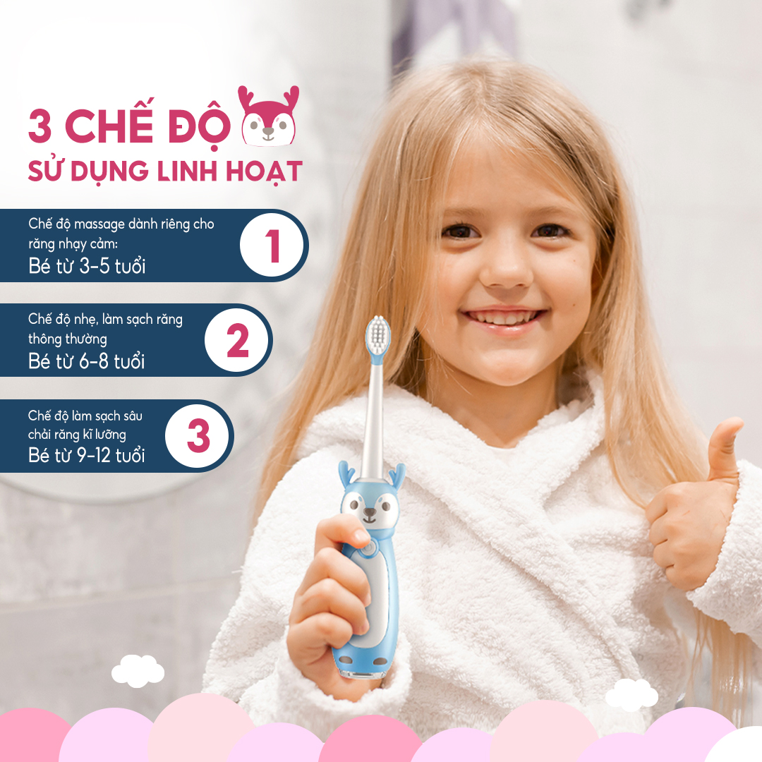 Bàn chải điện thông minh cho bé Lebenlang LBL3021, thiết kế đáng yêu cho bé, chống thấm nước IPX7, 3 chế độ, bảo hành 2 năm - hàng chính hãng 9 LÝ DO NÊN