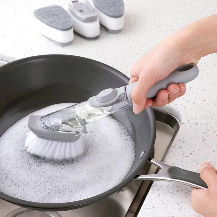 Bàn chải nồi có thể thêm chất tẩy rửa lỏng vào bàn chải, sử dụng nhiều lần, Loại bỏ hiệu quả tất cả các loại dầu mỡ, vết bẩn.