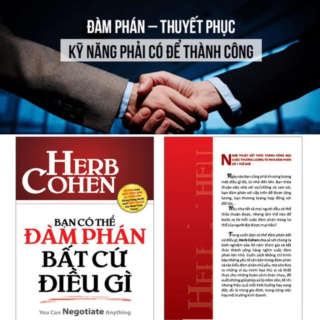 Trong cuốn sách Bạn có thể đám phám bất cứ điều gì, Herb Cohen chia sẻ với chúng ta kinh nghiệm của 40 năm tham gia và kết thúc thành công hàng nghìn cuộc đàm phán lớn nhỏ. Cuốn sách về Đàm phán và Thuyết phục này không chỉ trình bày những yếu tố căn bản trong đàm phán và các kiểu đàm phán chủ yếu, mà còn đưa ra những ví dụ minh hoạ thú vị và thiết thực cho những hoàn cảnh khác nhau, đề xuất những giải pháp xử lý mềm dẻo, tế nhị nhưng hiệu quả mỗi tình huống hay xung đột, dù là trong gia đình (Khi trẻ con khóc đòi quà…), trong cuộc sống hàng ngày (Khi vợ bạn im lặ), trong công việc (Khi xin tăng lương….) hay môi trường kinh doanh (Khi khai thuế lợi tức, khi mua đất…). Vì thế, Bạn có thể đàm phán bất cứ điều gì đã trở thành một trong những cuốn sách bán chạy nhất tại Mỹ hơn 9 tháng liền, và đã được dịch ra trên 20 thứ tiếng.