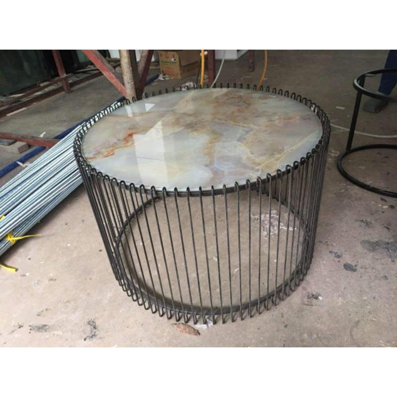 Bàn sofa mặt đá đen vân trắng dạng lồng chim