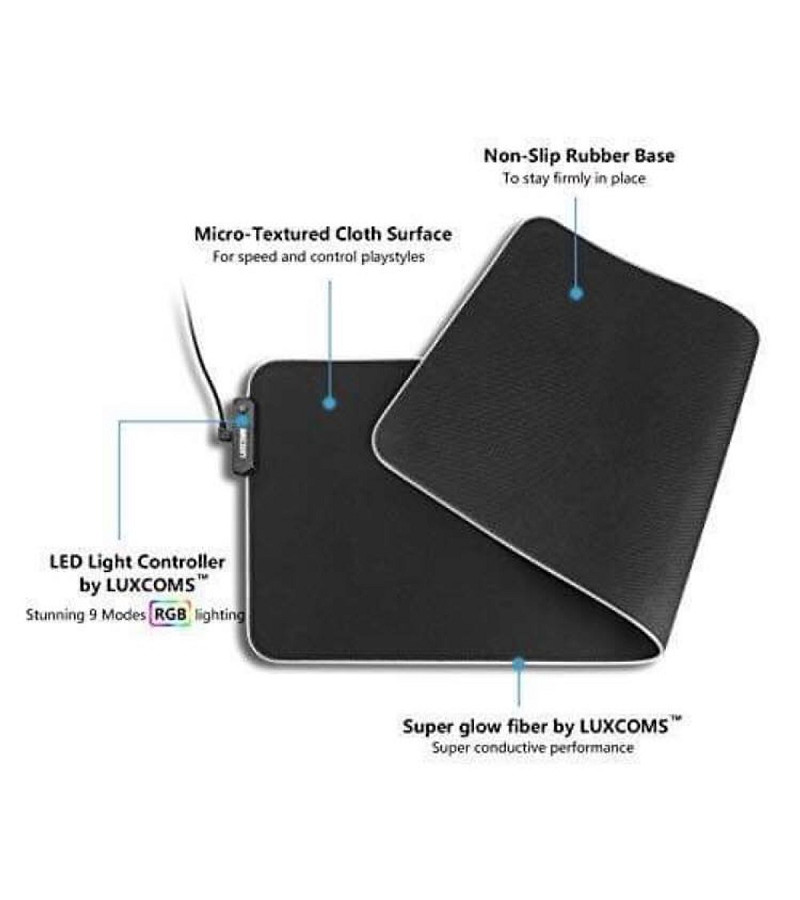 Thiết kế hiện đại, trẻ trung Miếng Lót Chuột  PAD RGB  có thiết kế đơn giản với hình dạng chữ nhật và 4 góc được bo tròn nhẹ. Hệ thống đèn led trang trí cho anh sáng đẹp mắt. Thao tác chính xác, nhanh nhẹn  PAD RGB sẽ góp phần không nhỏ vào những thao tác chính xác và nhanh nhẹn với chuột của các game thủ. Nhất là các game đòi hỏi thao tác nhanh nhẹn và chính xác. Chất liệu cao cấp Bàn Di Chuột Chơi Game  PAD RGB được làm từ chất liệu siêu bền cho thời gian sử dụng lâu dài. Sản phẩm được cấu tạo từ những sợi cực mảnh mang đến độ sần vừa phải giúp chuột di chuyển nhanh chóng và mượt mà hơn. Phù hợp cho nhiều loại chuột máy tính  Bàn Di Chuột Chơi Game PAD RGB có thể sử dụng với chuột quang, chuột bi và hầu hết các loại chuột laser thông dụng. Tính năng này giúp bạn sử dụng sản phẩm hiệu quả hơn và không phải thay mới khi thay đổi loại chuột máy tính.
