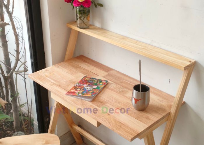 Bàn học gấp gọn bằng gỗ thông chân thang đa năng dành cho học sinh, sinh viên, văn phòng Bàn Gỗ Thông Chân Xếp Thang Đa Năng, Được thiết kế thông minh khi không sử