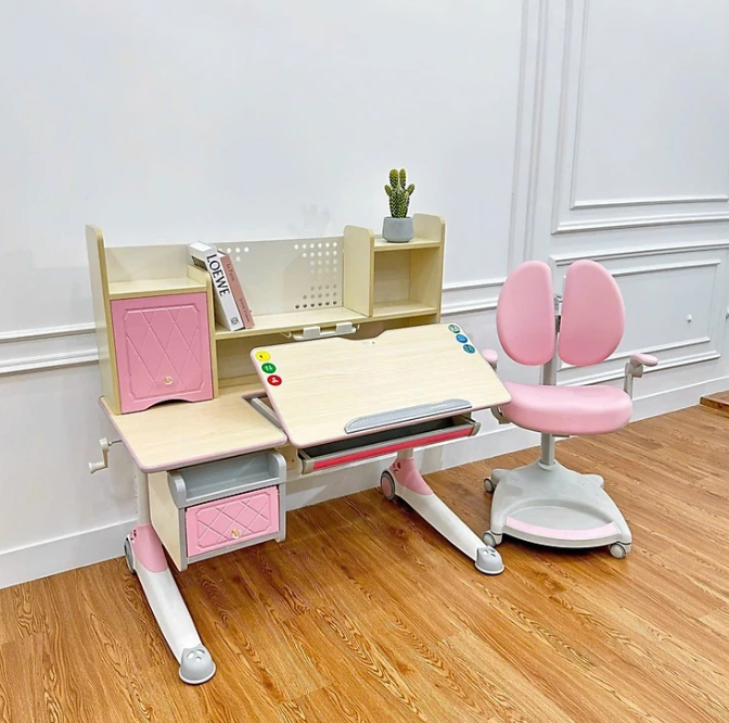 Bộ bàn học C15 nâng cấp. Nâng hạ độ cao bằng tay quay tiện lợi