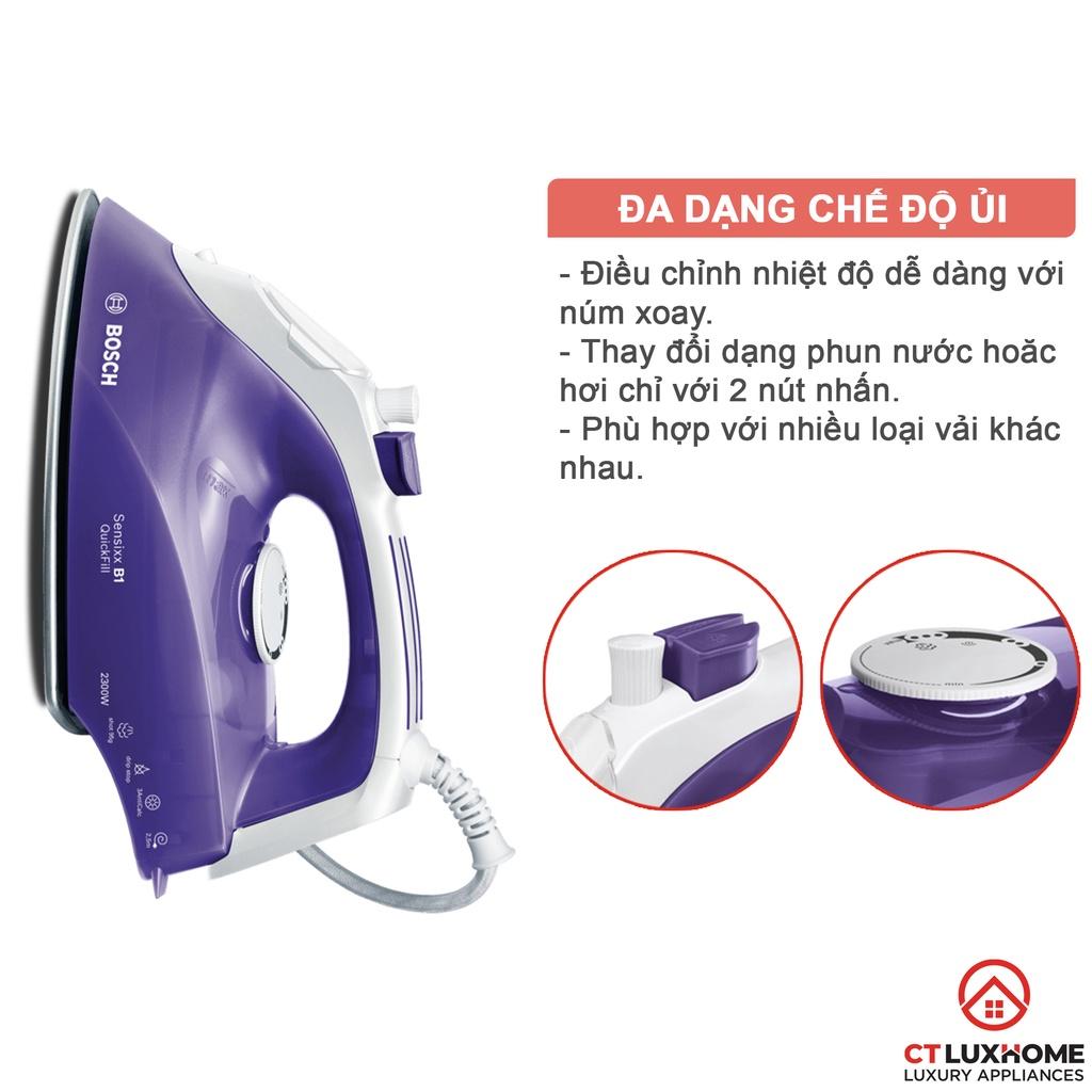 ✨Bàn là hơi nước, Bàn ủi hơi nước Bosch TDA2651GB 2300W, 50/60Hz, Hơi nước 30g/phút [Hàng chính hãng]