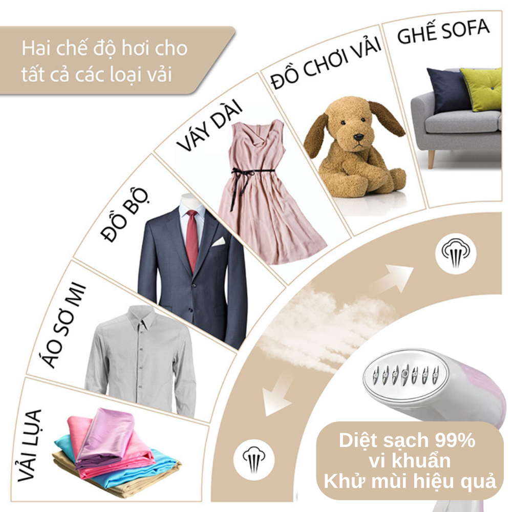 Bàn Là Hơi Nước Cầm Tay VinBuy tạo ra luồng hơi nước có sức nóng và áp suất rất cao, ủi thẳng các vết nhăn nhúm ở trên quần áo, đẩy bay các mùi hôi.
