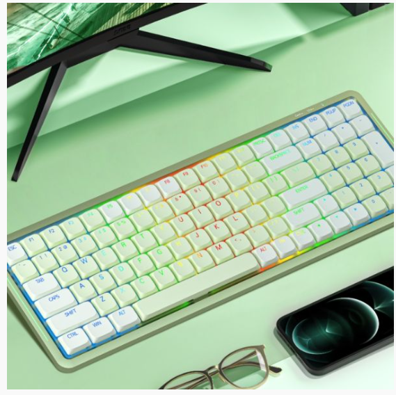 Keycap sử dụng pbt mờ, phối mầu gradient, so với keycap truyền thống, chúng có khả năng chống mài mòn cao hơn và sử dụng lâu dài mà không cần bôi trơn, bề mặt tiếp xúc hình cầu, thoải mái hơn khi chạm vào