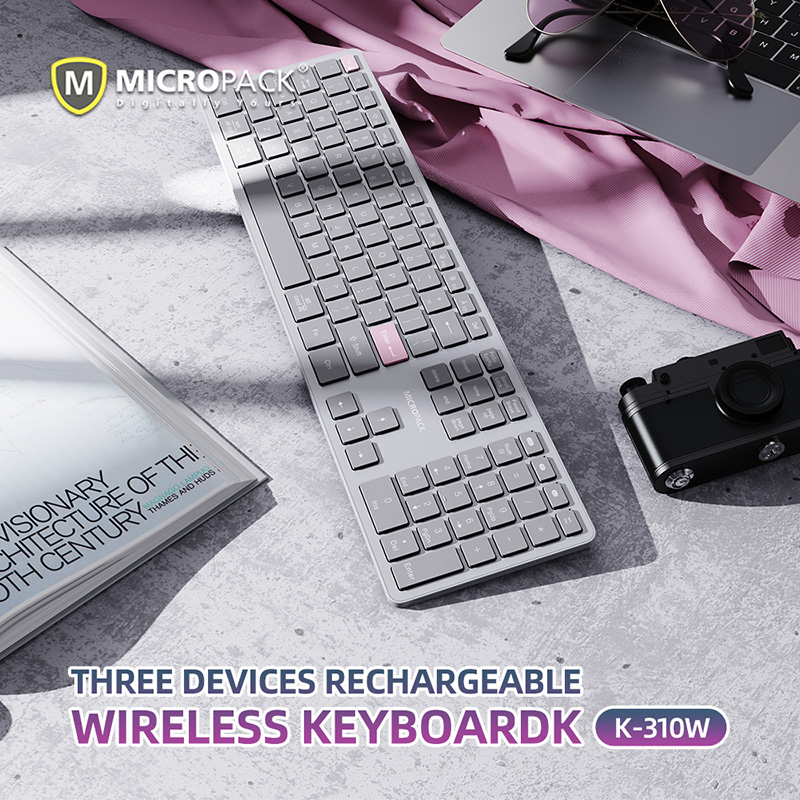Bàn phím không dây MicroPack Lifestyle K-310W Bàn Phím Cắt Kéo Kiểu Dáng Mỏng Thiết Kế Bằng Nhôm Hoàn Thiện Cao Cấp   MicroPack là thương hiệu nổi tiếng cung cấp đa dạng các sản