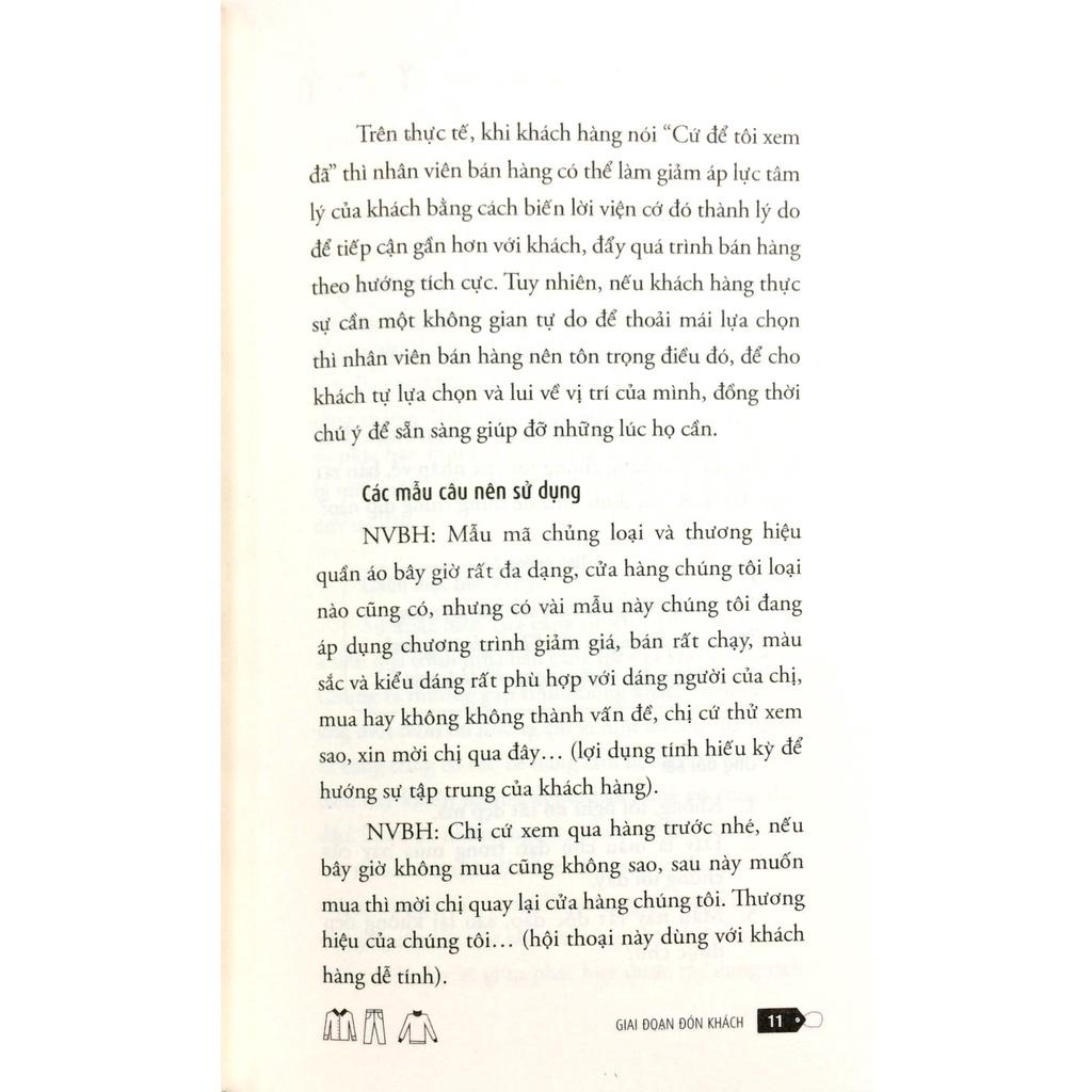 Bán quần áo là phải bán như thế này này! mô tả một cách toàn diện việc kinh doanh trong lĩnh vực thời trang với các chiến lược bán hàng cụ thể. Cuốn sách sẽ trao cho bạn cách nhanh nhất và rẻ nhất giúp bạn chinh phục khách hàng và đem lại doanh số cao cho cửa hàng mà bạn đang làm việc.  Hiện nay, cửa hàng bán lẻ đang giữ một vai trò trọng yếu trong việc tiêu thụ sản phẩm của các thương hiệu. Tuy nhiên, nhân tố quyết định doanh số tiêu thụ của một cửa hàng bán lẻ chính là yếu tố con người và hàng hóa (tính cả thương hiệu và sản phẩm). Trên tất cả, yếu tố Con người, cụ thể là những nhân viên bán hàng, chính là chìa khóa của vấn đề. Sự đóng góp của các nhân viên bán hàng ngày càng trở nên quan trọng trong quá trình phát triển của công ty và mọi doanh nghiệp cũng đang nỗ lực không ngừng để hoàn thiện hơn nữa trình độ giao tiếp của những nhân viên này để hệ thống bán lẻ trở nên mạnh mẽ hơn, thu hút được nhiều khách hàng hơn.  Bán quần áo là phải bán như thế này này! là cuốn sách chứa đựng nhiều điều khác biệt so với các tài liệu hướng dẫn thường thấy. Cuốn sách mô tả một cách toàn diện việc kinh doanh trong lĩnh vưc thời trang với các chiến lược bán hàng cụ thể, thực tế, có tính thực tế rất cao khi áp dụng vào việc đào tạo nhân viên. Cuốn sách kinh doanh này đồng thời cũng đưa ra những hướng dẫn, gợi ý, các mẫu câu sử dụng phù hợp với ngữ cảnh giúp việc trao đổi với khách hàng trở nên gần gũi thuyết phục.  Được đúc kết từ những trải nghiệm thực tế trên thương trường, những kinh nghiêm kiến thức được truyền tải trong cuốn sách Bán quần áo là phải bán như thế này này! có thể áp dụng để xử lý linh hoạt trong rất nhiều trường hợp cụ thể. Đặc biệt hơn nữa, cuốn sách cũng đề cập đến những cách ứng xử thất bại không nên dùng để giúp nhân viên bán hàng có cái nhìn cận cảnh và thực tế hơn để tránh những kết quả không đáng có xảy ra.  Hãy đọc và áp dụng những lời khuyên hữu ích từ Bán quần áo là phải bán như thế này này! và tận hưởng sự đột phá trong doanh thu và thành công trong công việc kinh doanh của bạn  Tên Nhà Cung Cấp Alpha Books  Tác giả Alpha Books biên soạn  NXB NXB Lao Động – Xã Hội  Năm XB 2018  Số trang 244  Hình thức Bìa Mềm  Sản phẩm bán chạy nhất Top 100 sản phẩm Marketing - Bán Hàng bán chạy của tháng