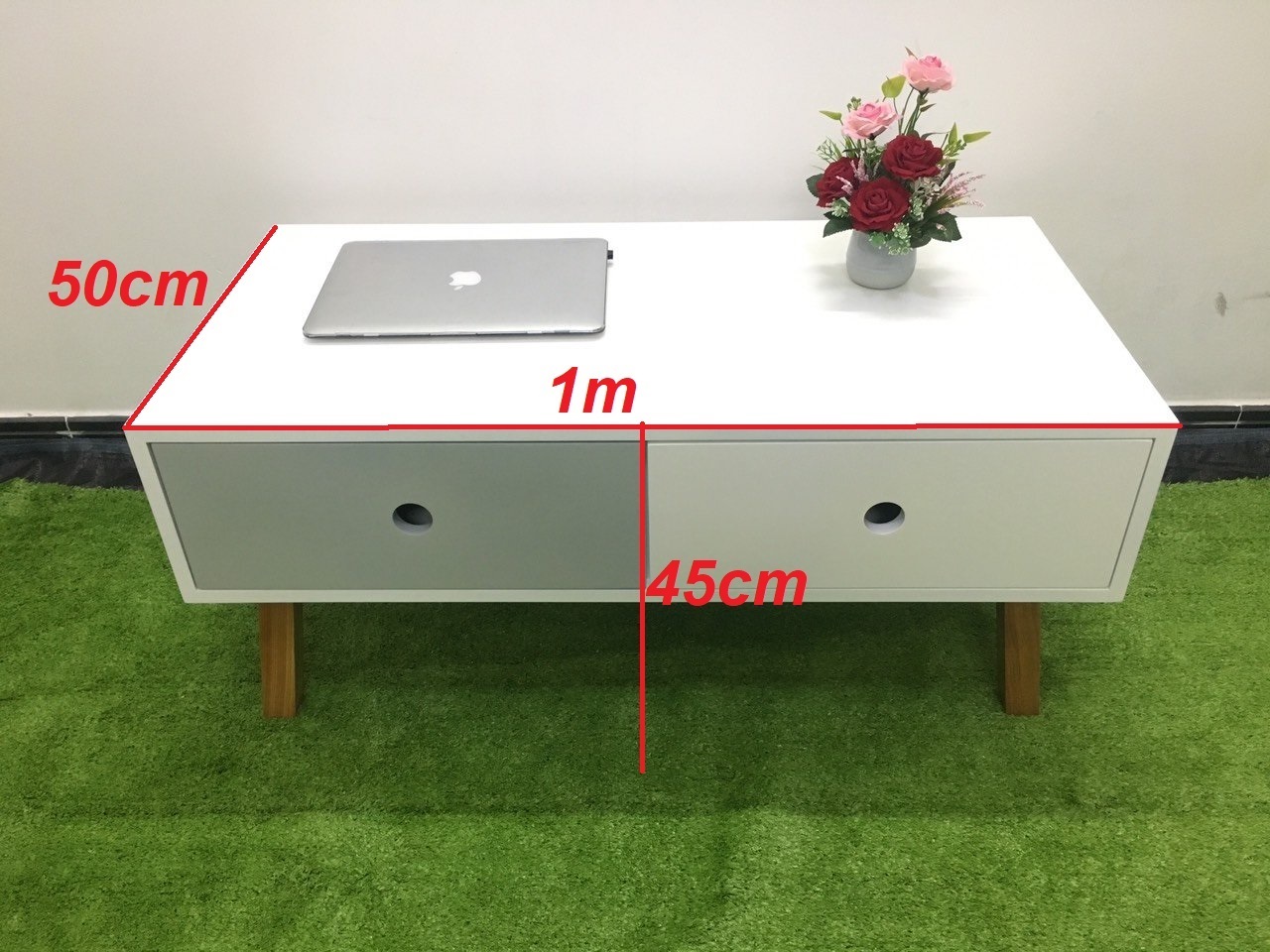 ✨Bàn sofa hình hộp trắng có hộc kéo T919-1