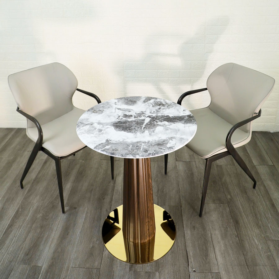 - Bàn cafe tiếp khách mặt đá nhỏ gọn - Chất liệu: Mặt đá pha lê, chân bàn sắt sơn tĩnh điện vân gỗ, đế bàn inox mạ màu vàng sang trọng - Kích thước: