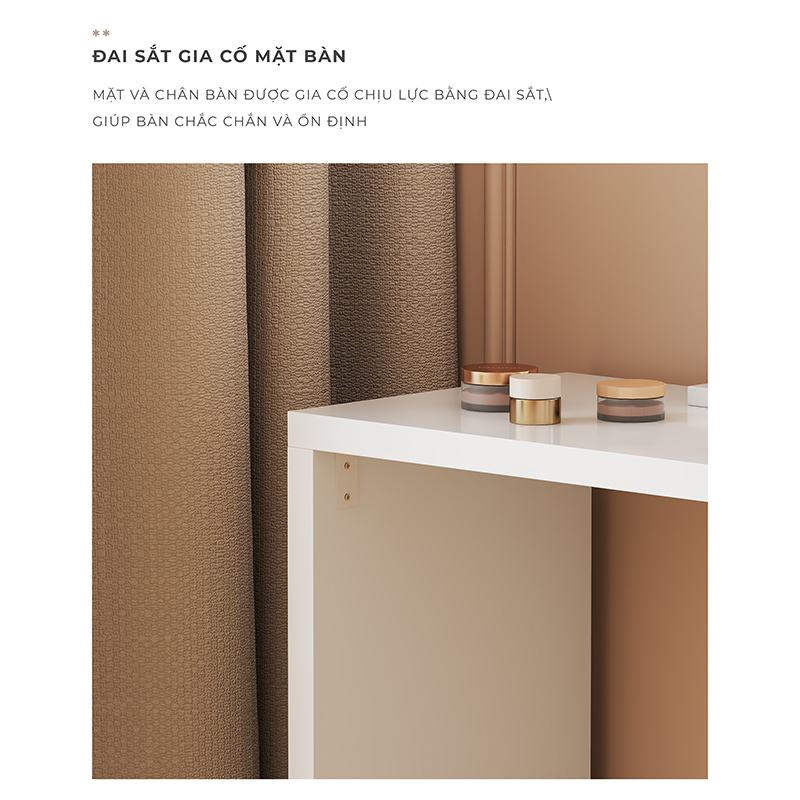 Bàn trang điểm sang trọng hiện đại - Kích thước: Dài 1m x rộng 40cm x cao 75cm - Thanh lịch, thu hút, thời thượng là những tính từ miêu tả chính xác nhất về