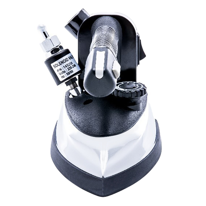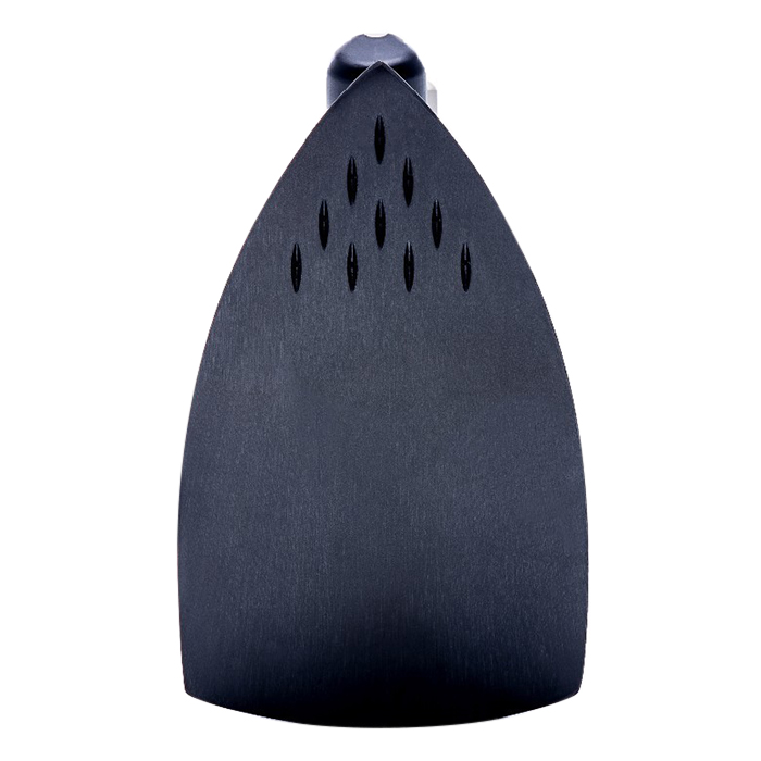 Đế bàn ủi làm đúc nguyên khối, với 10 lỗ thoát hơi trải theo hình tam giác, giúp việc ủi dễ dàng hơn và nhanh chóng hơn. Lượng hơi nước ra khô và nóng giúp ủi nhanh, mau có li.