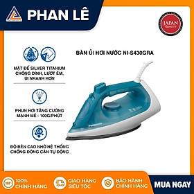Bàn ủi hơi nước Panasonic NI-S430GRA có mặt đế Silver Titan chống dính trượt êm nhẹ trên bề mặt quần áo, ủi thẳng các nếp nhăn nhanh với công suất 2300W, ủi được nhiều quần áo với dung tích bình chứa 300 ml, có nhiều chức năng ủi đáp ứng tốt nhu cầu sử dụng trong gia đình. Thiết kế của sản phẩm - Bàn ủi Panasonic thiết kế tối giản, tông màu trẻ trung, chỉ nặng 1.1 kg kết hợp với tay cầm vừa vặn cho bạn cầm nắm và di chuyển bàn ủi linh hoạt. - Đế tựa kích thước hợp lý cho bạn dựng đứng bàn ủi dễ dàng, ổn định, hạn chế ngã, đổ.  Mặt đế - Thiết kế mặt đế Silver Titan chống dính lướt mượt mà trên tất cả các chất liệu vải, hạn chế trầy xước, dễ dàng làm sạch. - Mặt đế hình chữ U cho bạn thay đổi hướng ủi dễ dàng, thuận tay.  Công suất và dung tích bình chứa - Bàn ủi hơi nước có công suất hoạt động lên đến 2300W giúp làm nóng bàn ủi trong thời gian ngắn, phun hơi mạnh mẽ, đồng đều, ủi thẳng các nếp nhăn dễ dàng.  - Bình chứa nước dung tích 300 ml ủi được tầm 4 - 5 bộ quần áo trong một lần ủi, nên sử dụng nước sạch, không dùng nước xả quần áo, nước hoa. Bảng điều khiển - Trang bị bảng điều khiển nút xoay, nút nhấn và nút gạt cho bạn tùy chỉnh các chức năng ủi, nhiệt độ ủi thuận tiện.  - Có nhiều chức năng ủi: phun hơi, phun tia, ủi khô và ủi hơi nước.  Tiện ích - Hỗ trợ tính năng chống nhỏ giọt giảm khả năng bị rò rỉ nước khi cài đặt ở nhiệt độ thấp, tăng cường độ bền cho thiết bị và đảm bảo an toàn cho người dùng. - Hệ thống chống đóng cặn hạn chế tình trạng tắc nghẽn lỗ thoát hơi nước, giúp nước phun ra trong sạch, ủi đồ bền đẹp dài lâu.  - Thiết kế mũi nhọn, rãnh cúc tiện lợi giúp chị em len lỏi bàn ủi vào các khu vực nhỏ, hẹp như nách áo, cổ áo, hàng cúc áo,... dễ dàng. - Không xoắn dây với thiết kế dây nguồn xoay 360 độ, thao tác bàn ủi không sợ vướng víu.   Lưu ý khi sử dụng - Không bao giờ đổ chất tẩy vào bên trong bàn ủi vì có thể làm hỏng các bộ phận chức năng sản phẩm. - Luôn đặt bàn ủi đứng trên đế để bảo vệ lớp chống dính của mặt đế không bị xước, mòn, dính bẩn. - Trong khi sử dụng, các lần nhấn nút tia nước nên cách nhau khoảng 2 giây để không tạo ra vệt nước trên quần áo. - Chỉ nên sử dụng bàn ủi với mục đích ủi vải, không dùng cho mục đích khác. - Khi ủi quần áo ướt nên dùng chức năng ủi khô vì có thể gây phỏng do nước nóng bắn ra từ thân bàn ủi chính.  Bàn ủi hơi nước Panasonic NI-S430GRA 2300W thiết kế gọn gàng, mặt đế Silver Titan chống dính độ bền cao, dễ làm sạch, ủi đồ nhanh chóng với công suất lớn, dung tích bình chứa 300 ml ủi được nhiều bộ quần áo, sử dụng bền bỉ, an toàn với hệ thống chống đóng cặn, chống nhỏ giọt.