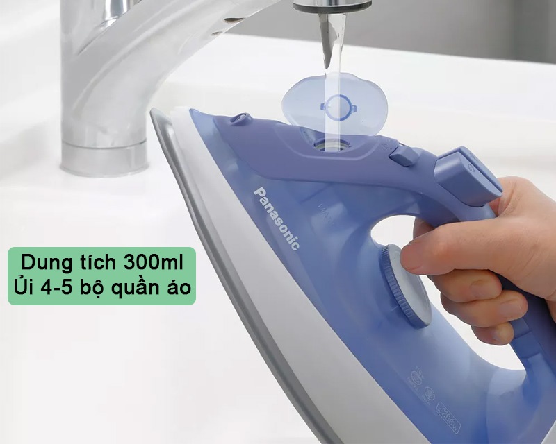 - Bình chứa nước dung tích 300 ml ủi được khoảng 4 - 5 bộ quần áo trong một lần dùng, lưu ý nên dùng nước sạch, không dùng các chất tạo mùi, nước hoa,… vào bình chứa.