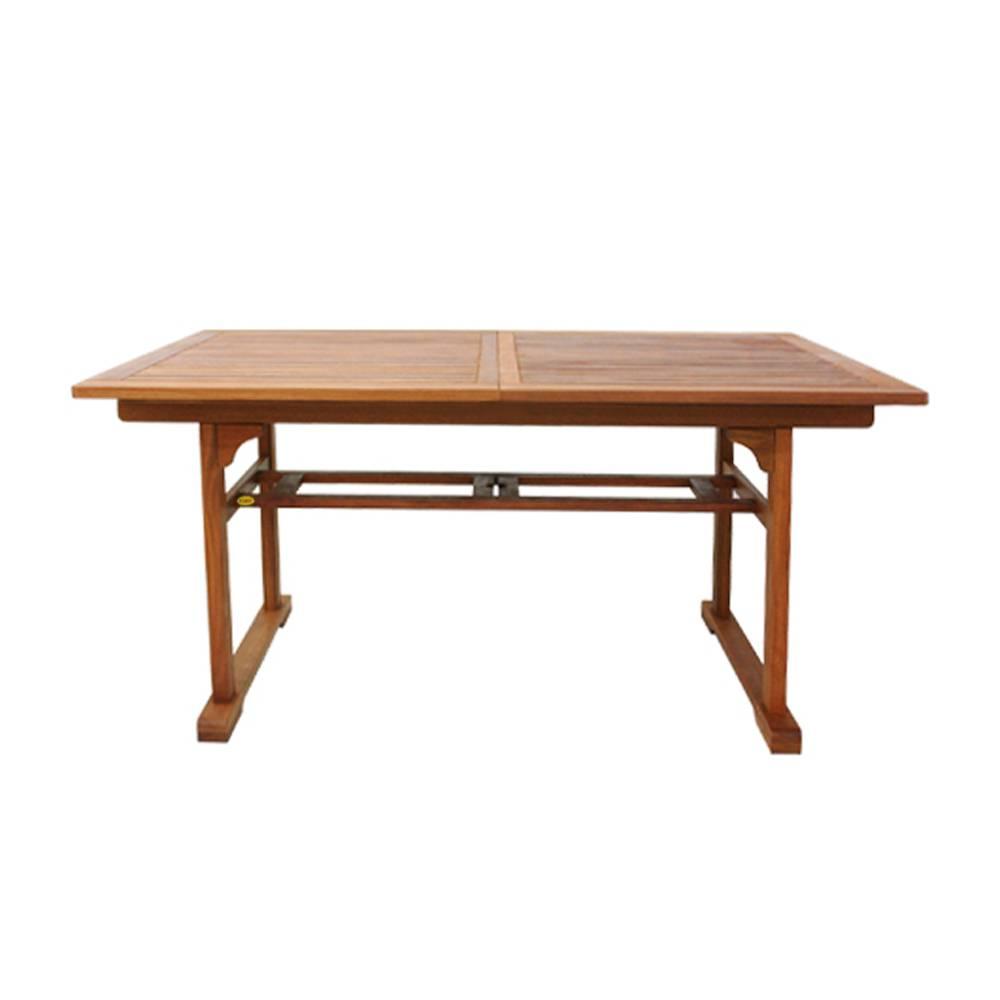 Bàn xếp mở rộng Karang có kích thước 1500/2000x980x720 mm, được làm từ gỗ dầu Nam Phi nhập khẩu nên có khả năng chịu mưa nắng tuyệt vời, gia công sắc xảo, đáp ứng các tiêu chuẩn xuất khẩu vào các thị trường khó tính như Nhật Bản, Hàn quốc... Chất gỗ dầy dặn, các nan ghế được xử lý trơn nhẵn an toàn cho người ngồi. Thiết kế hài hòa, tỷ lệ cân đối tạo nên kết cấu vô cùng chắc chắn, đảm bảo sử dụng lâu bền. Với khả năng mở rộng, bàn Karang rất tiện lợi trong việc tổ chức những buổi tiệc tùng có quy mô khác nhau. Ngoài ra, nó có thể để ở ban công hoặc sân vườn ngoài trời, phù hợp với những buổi cafe sáng hoặc trà chiều thư giãn, ngắm cảnh.