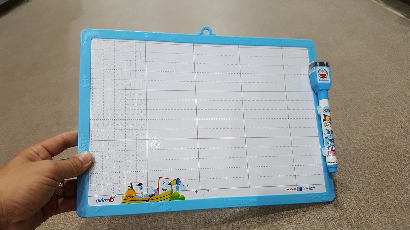 Mua tại TiktokBảng Bộ B-09 - Là loại bảng bộ, 1 mặt viết phấn, 1 mặt viết lông bảng, trên bảng có kẹp thêm 01 bút lông bảng có sẵn đồ bôi chuyên dành cho học sinh. - Mặt viết phấn mịn và bám phấn giúp viết rõ nét, chữ viết đẹp. - Mặt viết lông bảng màu trắng, mặt trơn dễ viết, dễ xóa. - Kích thước A4