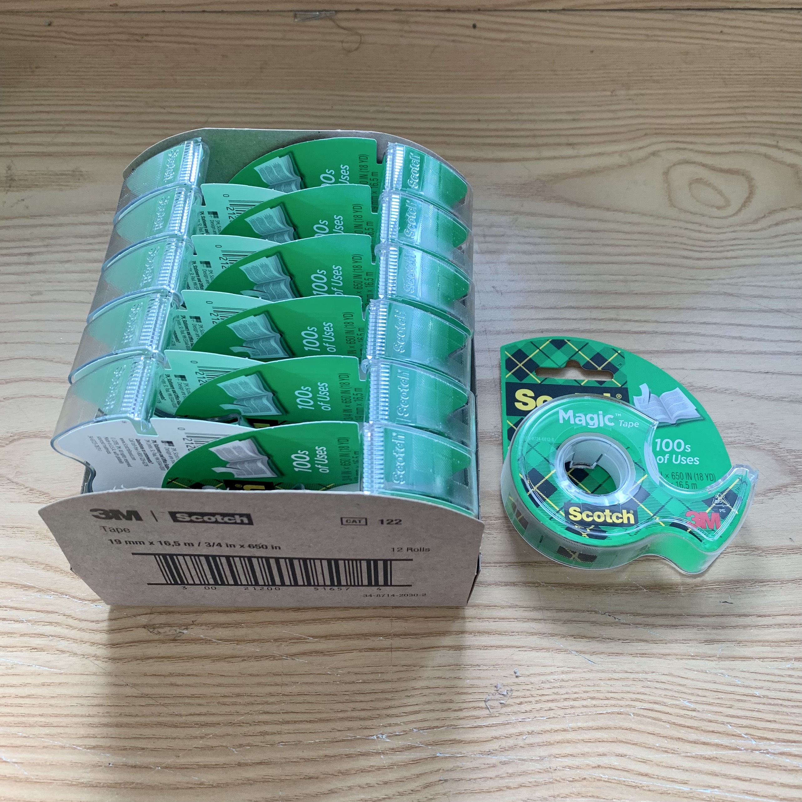 ✨Băng dính đa năng 3M Scocth 122, size 19mm x 16,5m - kèm máy cắt | Sản xuất tại Mỹ