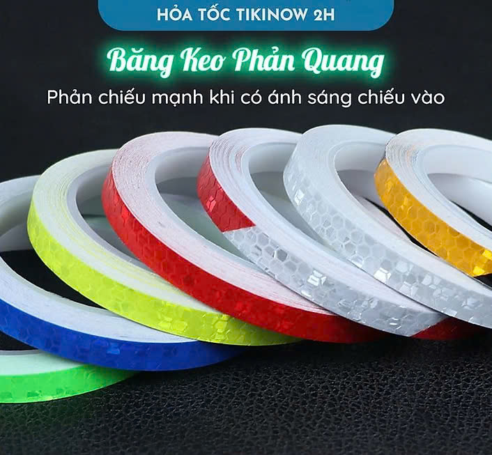 Mua tại TiktokMô tả sản phẩm Băng keo Phản Quang: là loại keo phản chiếu mạnh khi có ánh sáng chiếu vào. Ứng dụng để dán ngoại thất oto, xe máy, xe đạp, dán lên quần áo phụ kiện để đi đêm. Băng keo phản quang khác với keo dạ quang, băng keo phản quang không tự phát sáng nếu không có ánh sáng chiếu vào. Cách sử dụng: