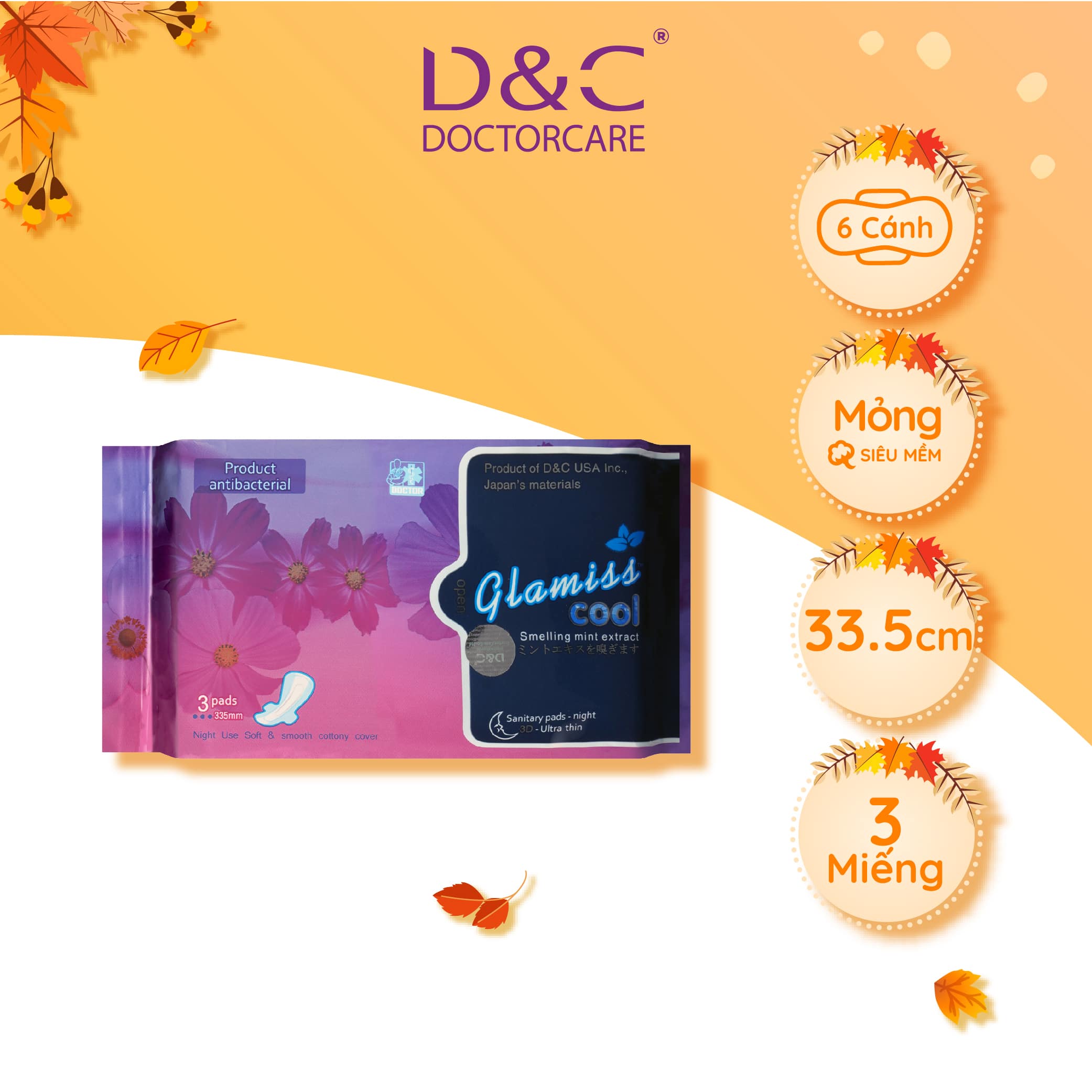 - Bảo quản Băng vệ sinh ban đêm nơi khô ráo, thoáng mát và tránh ánh nắng mặt trời, tránh xa tầm tay trẻ em. CAM KẾT CỦA DOCTOR CARE "Một sản phẩm sẽ không hoàn hảo nếu nó không chạm tới trái tim khách hàng" Chúng tôi tự tin rằng các dòng sản phẩm mang thương hiệu Doctor Care không những đạt tiêu chuẩn khắt khe trong nước và quốc tế, mà sản phẩm của Doctor Care còn có thể chạm đến trái tim khách hàng bởi công nghệ tiên tiến và sự thấu hiểu người tiêu dùng! Doctor Care chăm sóc từng trải nghiệm của khách hàng với không chỉ sản phẩm tốt nhất mà còn là chất lượng dịch vụ tốt nhất. Đây chắc chắn sẽ là sự lựa chọn lâu dài và đáng tin cho người tiêu dùng Việt! Cảm ơn quý khách hàng đã tin tưởng và lựa chọn sản phẩm Băng vệ sinh thảo dược Glamiss Cool ban đêm. Mọi đóng góp về dịch vụ quý khách hàng vui lòng gửi tin nhắn vào Mọi đóng góp về dịch vụ quý khách hàng vui lòng gửi tin nhắn vào hộp thư của chúng tôi. Doctor Care xin được ghi nhận và phản hồi tất cả góp ý của quý khách hàng trong thời gian trong thời gian sớm nhất. Với mỗi nhân viên của Doctor Care, sự hài lòng của khách hàng chính là niềm vui của chúng tôi. Vì khách hàng là thượng đế. Xin chân thành cảm ơn!
