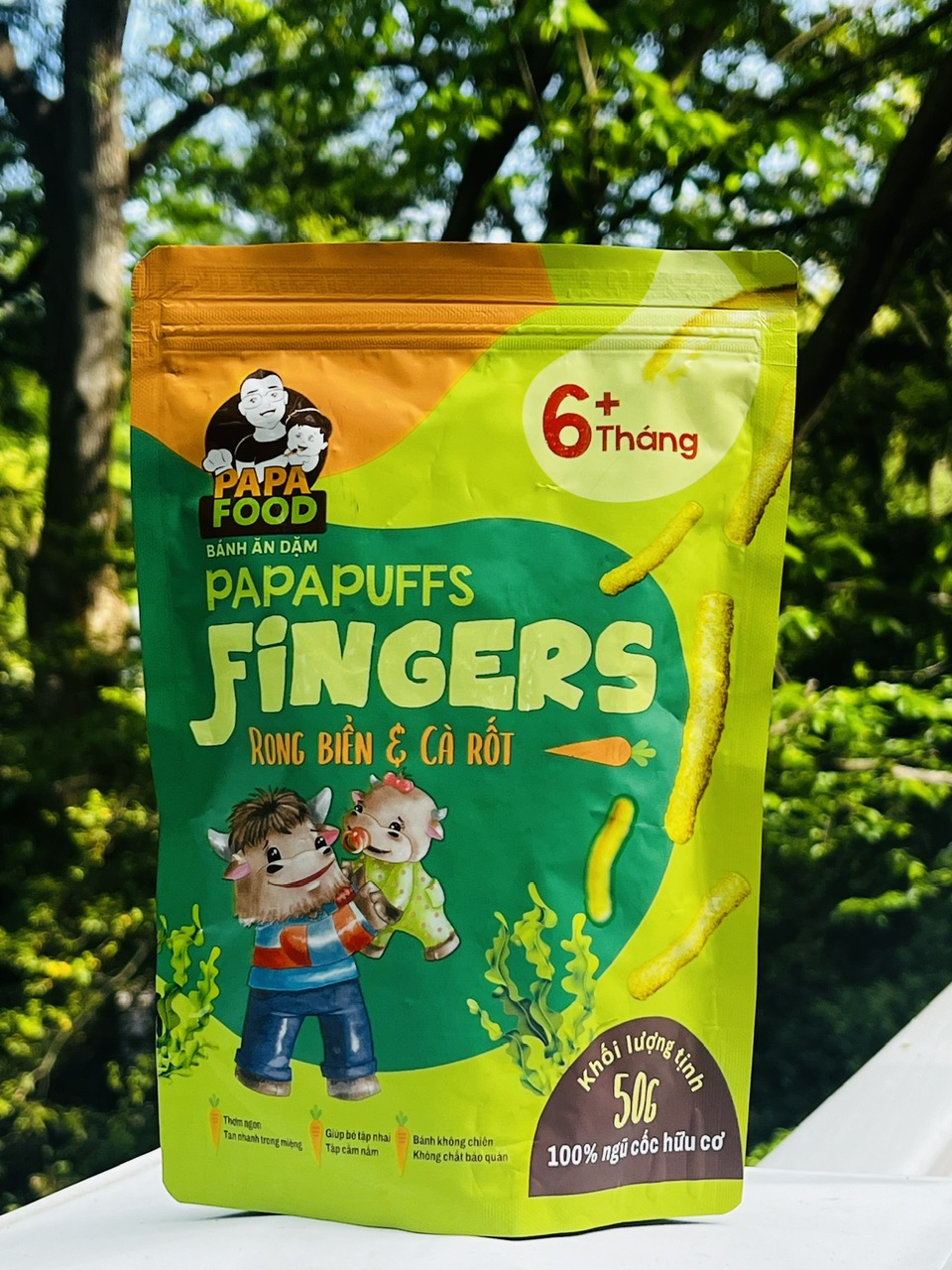 ✨Bánh ăn dặm PAPAPUFFS FINGERS - Vị RONG BIỂN&CÀ RỐT - 100% Ngũ Cốc Hữu Cơ - Gói 50g