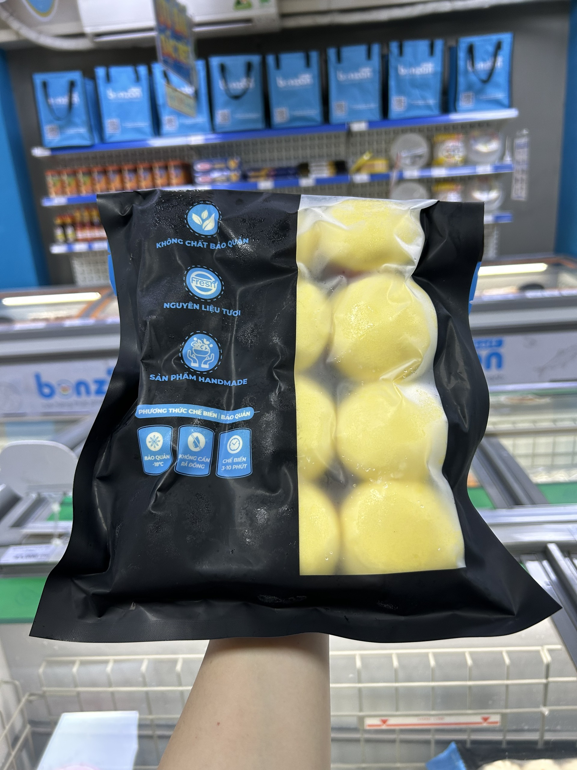 Mua tại TiktokVới sản phẩm tươi sống, trọng lượng thực tế có thể chênh lệch khoảng 10%. ĐỊNH LƯỢNG: 45g/cái x 12 cái/gói THÀNH PHẦN: - Vỏ bánh bao - Nhân: bơ, bột custard, trứng gà, gia vị, nước MÔ TẢ SẢN PHẨM: Bánh bao có vỏ màu vàng, giấy lót màu đỏ, nhân màu vàng. Vỏ bánh mềm xốp, nhân tan chảy thơm mùi trứng sữa, vị béo đặc trưng của trứng muối gây cảm giác khó cưỡng cho người dùng CÁCH CHẾ BIẾN: - Không rã đông - Hấp 100°C, 6-7 phút - Microwave ở chế độ hấp: 3-4 phút BẢO QUẢN: - Bảo quản: ở nhiệt độ -15°c đến -18°c hoặc trong ngăn đá tủ lạnh - Không đông lại sau khi đã rã đông HSD: 12 tháng