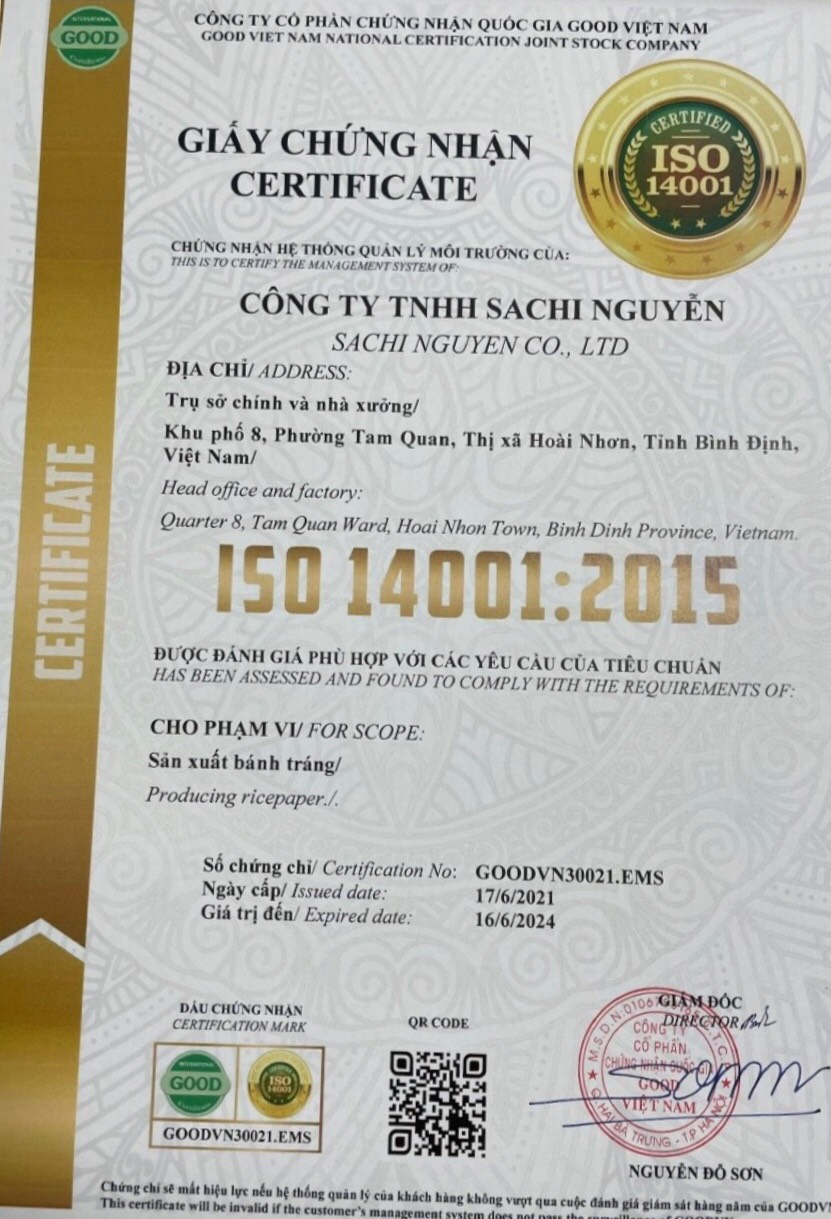 Công Ty TNHH Sachi Nguyễn: Là đơn vị sản xuất bánh tráng đạt chuẩn xuất khẩu đi thị trường kho tính.