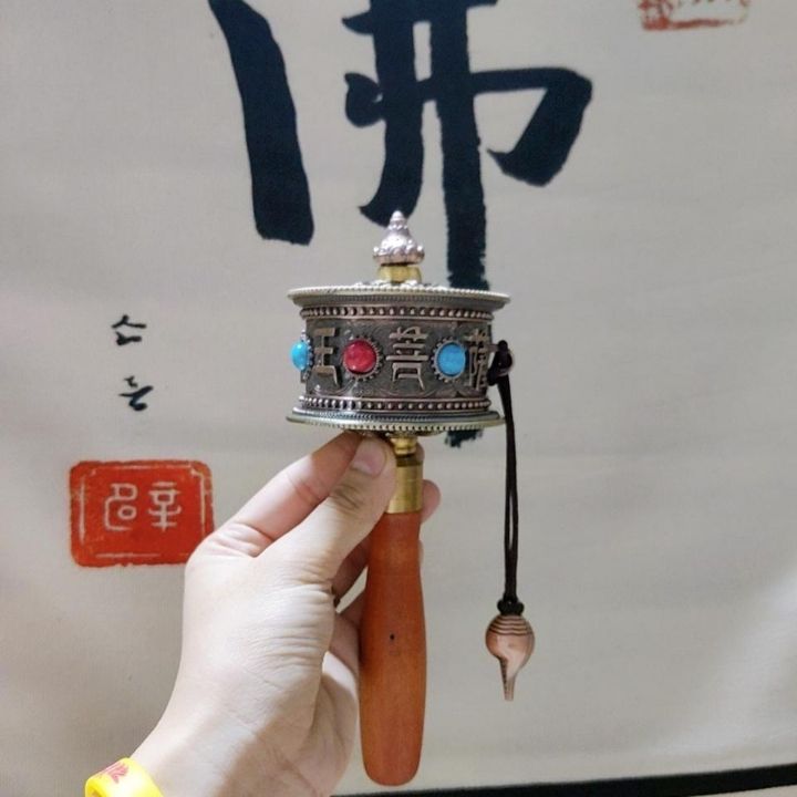 Bánh xe cầu nguyện Kinh luân tay xoay và đế sen - Cầu bình an, may mắn