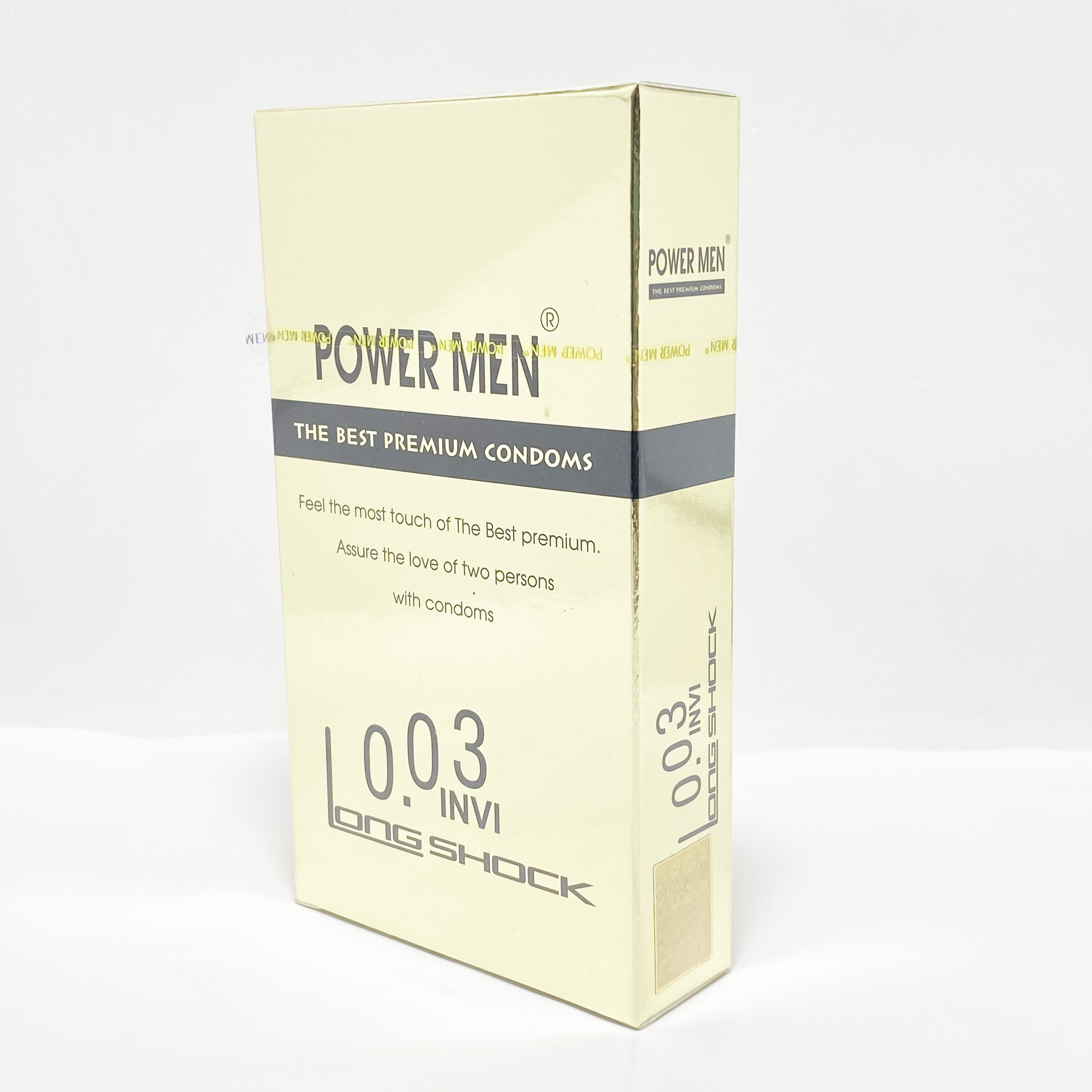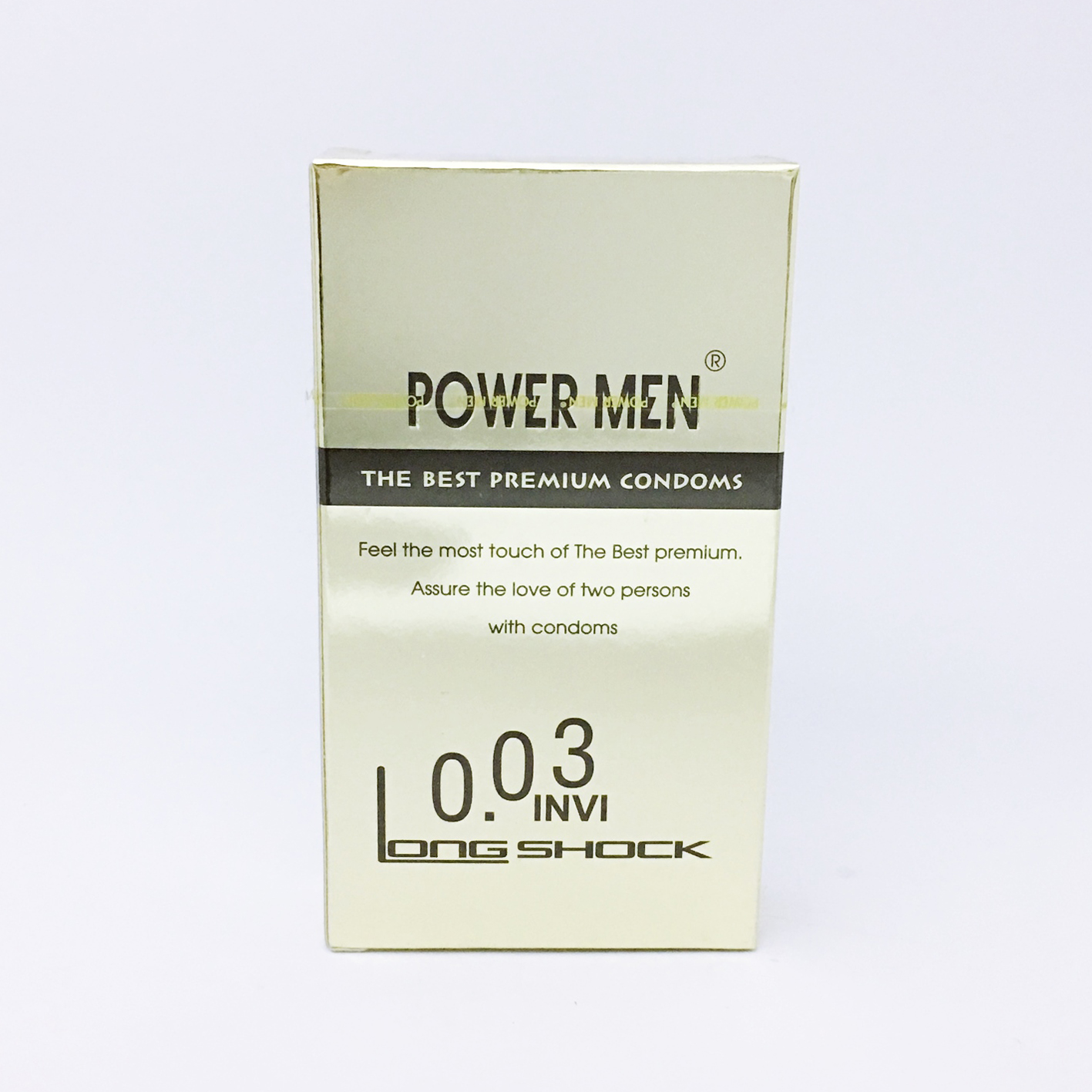 ao Cao Su Kéo Dài Cuộc Yêu Power Men 0.03 Invi Long Shock - Chủng loại: Bao cao su siêu mỏng 0.03mm, bao cao su chống xuất tinh sớm - Bao cao su kéo dài cuộc yêu