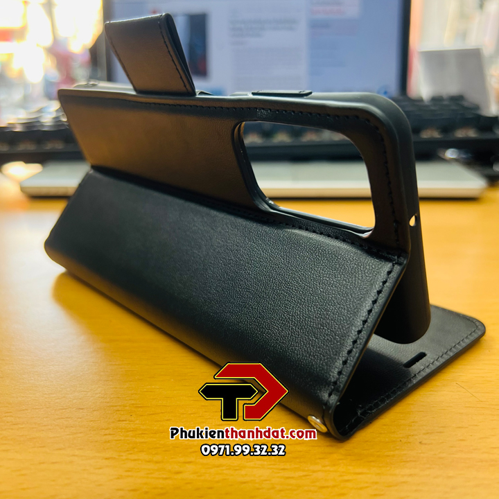 Bao da dạng ví  hiệu Hanman có quai cài. Bao da được làm từ chất liệu da cao cấp, bền chắc, rất khó bị trầy, bong tróc và khó bám bẩn. Mặt trước bao da có ngăn đựng tiền, và các ngăn phụ để card visit, thẻ ATM…