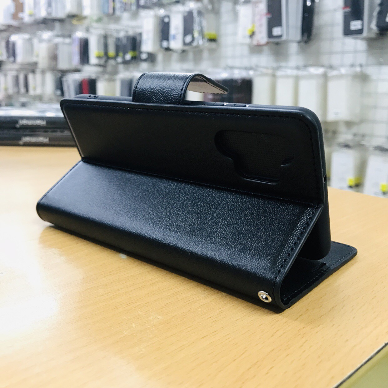 Bao da được làm từ chất liệu da cao cấp, bền chắc, rất khó bị trầy, bong tróc và khó bám bẩn. Mặt trước bao da có ngăn đựng tiền, và các ngăn phụ để card visit, thẻ ATM….