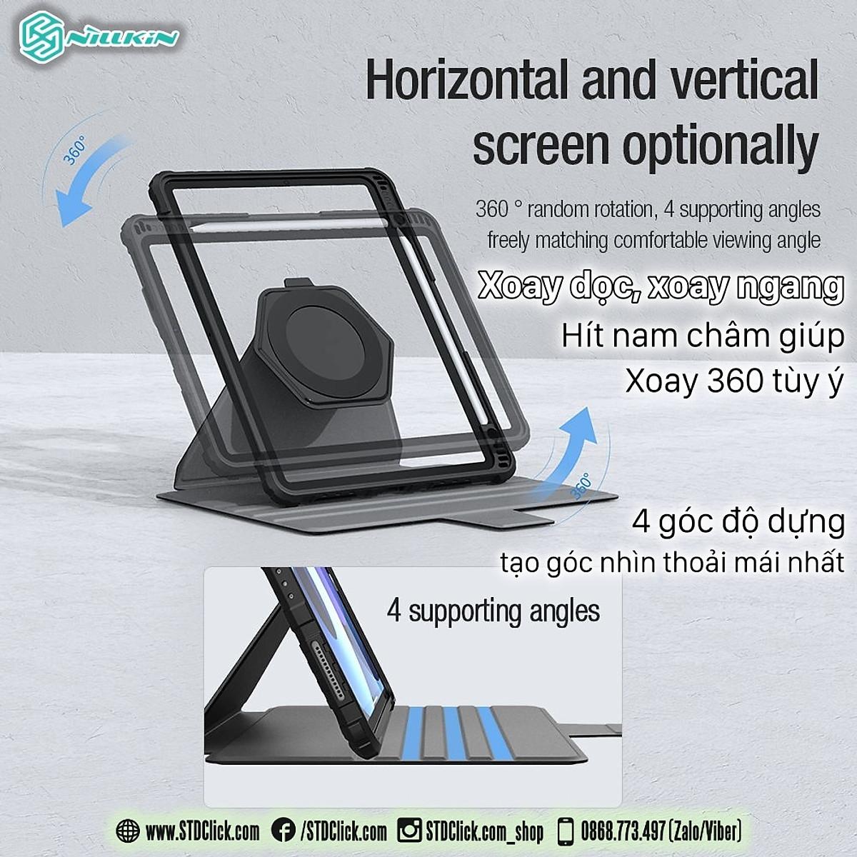 BAO DA DÀNH CHO PAD A16 Gen 11 2025 , Gen 10 NILLKIN BUMPER SNAPSAFE với phần Nắp có thể tháo rời thông qua nam châm hút cực mạnh, vòng nam châm mặt lưng còn có thể được hít chắc chắn trên bề mặt sắt. Với thiết kế vòng nam châm và nắp tự hít có thể tháo rời giúp máy có thể đặt theo chiều ngang và chiều dọc, góc nhìn có thể được điều chỉnh tự do ở mọi góc 360 °
