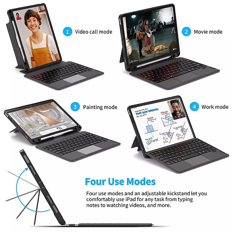 Bàn phím Wiwu Mag Touch iPad Keyboard Case dễ dàng gấp lại thành 1 lớp vỏ bảo vệ để bảo vệ cho mặt trước và mặt sau sản phẩm. Hơn thế còn có thể tháo rời và gắn liền bàn phím lại với nhau bằng từ tính một cách linh hoạt