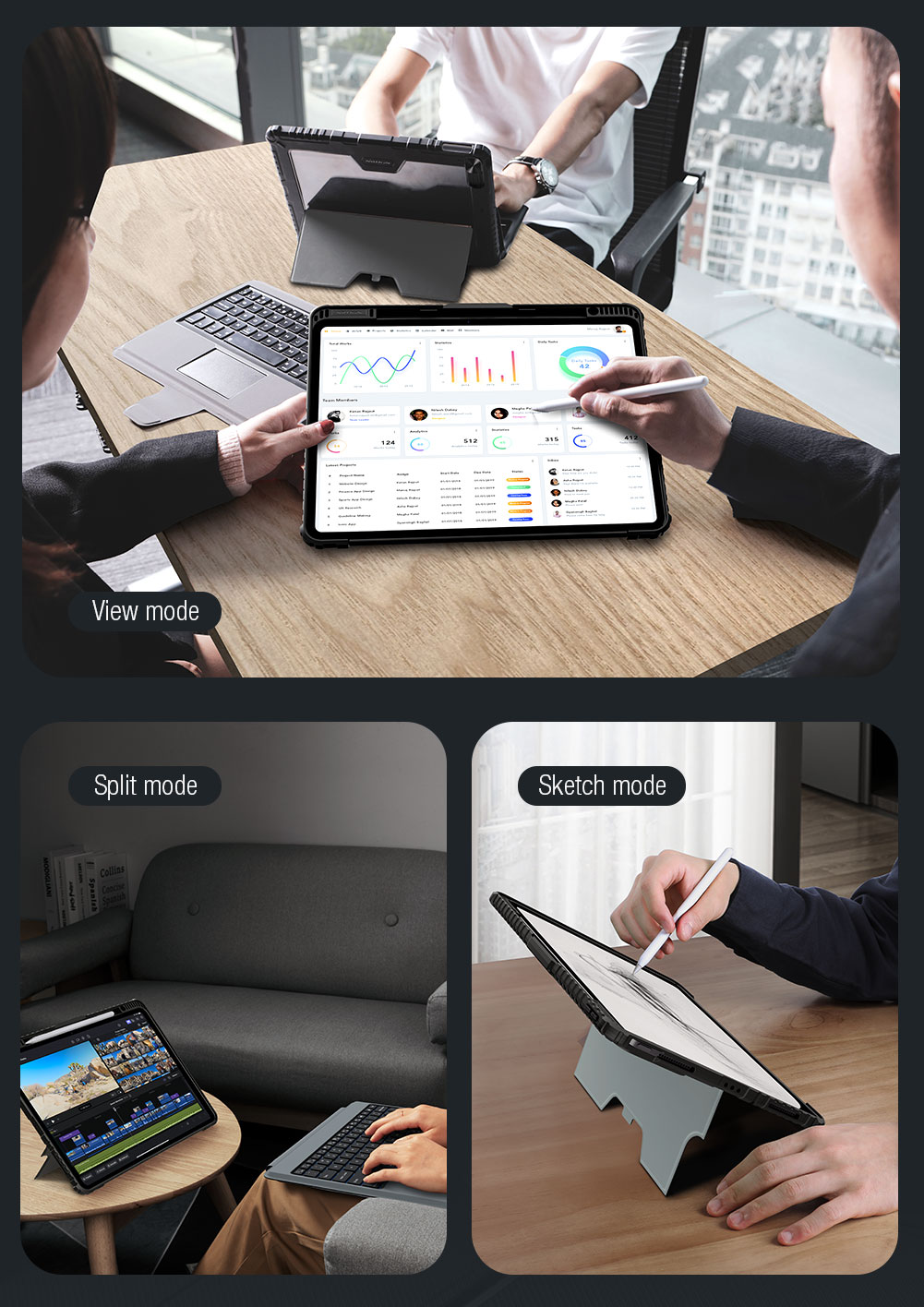 . Được làm bằng vật liệu TPU, PC và PU nhập khẩu, ốp lưng bảo vệ iPad của bạn. Khuôn bằng cách phun tích hợp với thiết kế hình học tinh tế kết hợp với