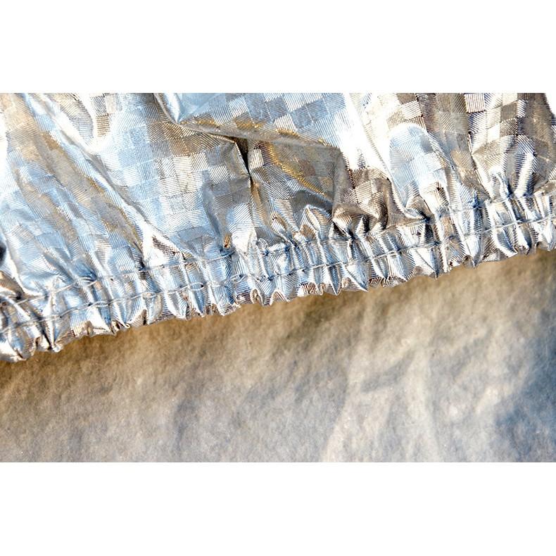 Bạt phủ xe ô tô 7 chỗ 3 lớp tráng nhôm cách nhiệt, chống nóng, chống thấm, chống bụi bẩn - Bạt phủ xe có mặt ngoài là chất liệu vải PEVA tráng nhôm phản