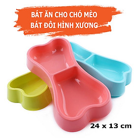 Bát nhựa đôi đựng thức ăn cho chó mèo hình khúc xương
