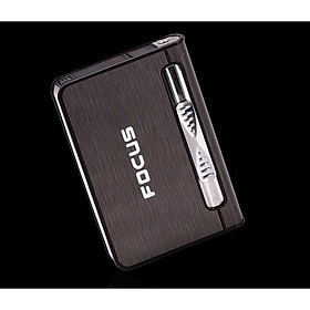 Hộp đựng thuốc l.á 20 điếu vỏ kim loại tích hợp bật lửa điện để mồi châm.