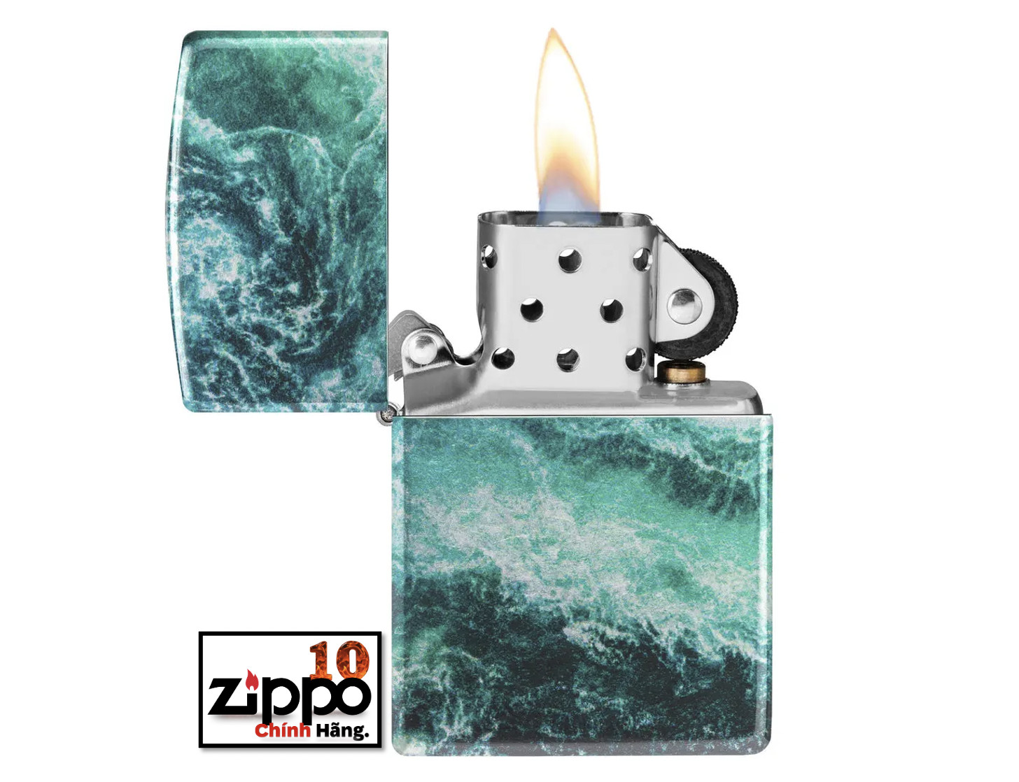 Thiết kế mới hoa văn vân đá cẩm thạch được tạo trên chiếc bật lửa Zippo đồng thau, nền mạ High Polish Black bằng qui trình in hình ảnh màu 360° của Zippo. Được đóng