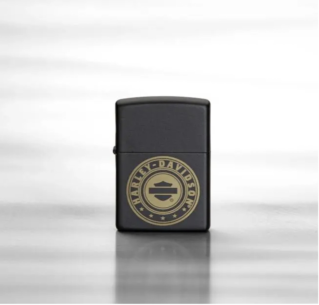 Hãy tách mình ra khỏi đám đông với thiết kế lấy cảm hứng từ Harley-Davidson này. Chiếc bật lửa màu đen mờ này nổi bật với biểu tượng hình khiên và thanh Harley-Davidson được khắc bằng laser, thể hiện thiết kế bằng đồng, tạo nên sự khác biệt chắc chắn nhưng tinh tế. Được đóng gói trong một hộp đựng dạng quà tặng. Để tối ưu hiệu suất, hãy dùng nhiên liệu bật lửa của Zippo.