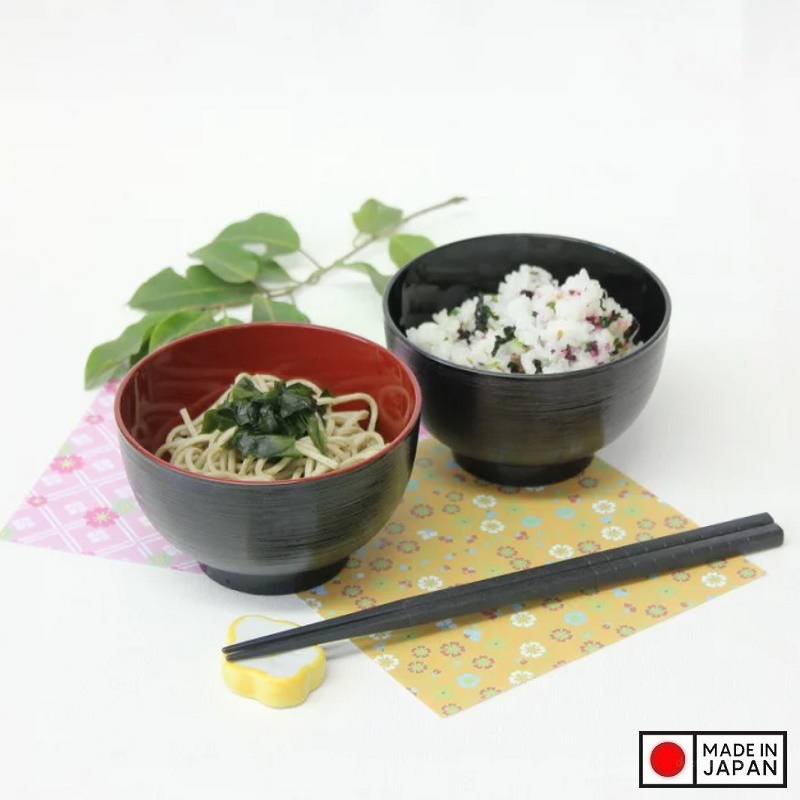 Bát tròn miệng rộng 500ml (Ø14.5×5.5cm) ■ Xuất xứ: Nhật Bản | MADE IN JAPAN ■ Kích thước:Ø145 x 55 Hmm ■ Màu sắc: Đen ~ lòng đỏ ■ Chất liệu:  - Nhựa Polyester (PET) bề mặt phủ