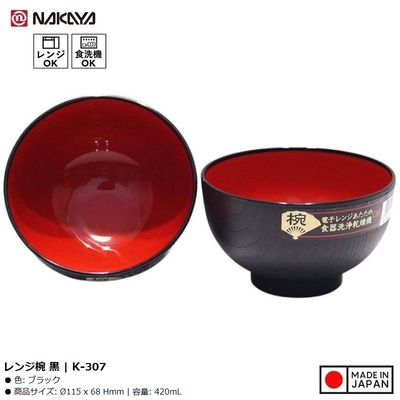 Bát tròn miệng rộng 500ml (Ø14.5×5.5cm) ■ Xuất xứ: Nhật Bản | MADE IN JAPAN ■ Kích thước:Ø145 x 55 Hmm ■ Màu sắc: Đen ~ lòng đỏ ■ Chất liệu:  - Nhựa Polyester (PET) bề mặt phủ
