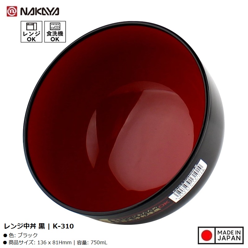 Bát nhựa tròn nhỡ màu đen (Ø13.6×8.1cm) ■ Xuất xứ: Nhật Bản | MADE IN JAPAN ■ NSX: Nakaya Chemical Industry Co., Ltd (Japan) ■ Model: K-310-1   ■ Kích thước: Ø136 × 81Hmm ■ Dung tích: 750ml ■ Màu sắc: Màu